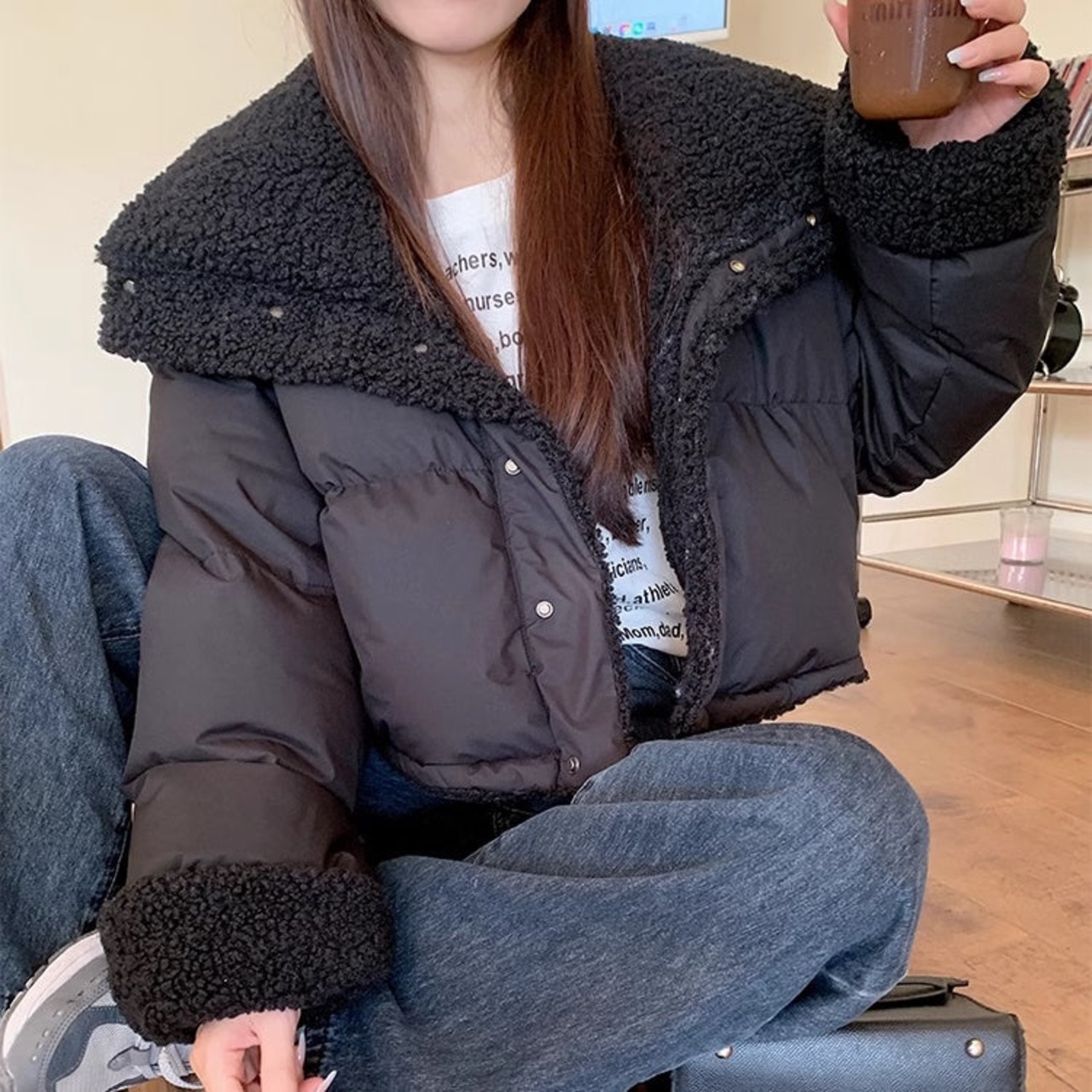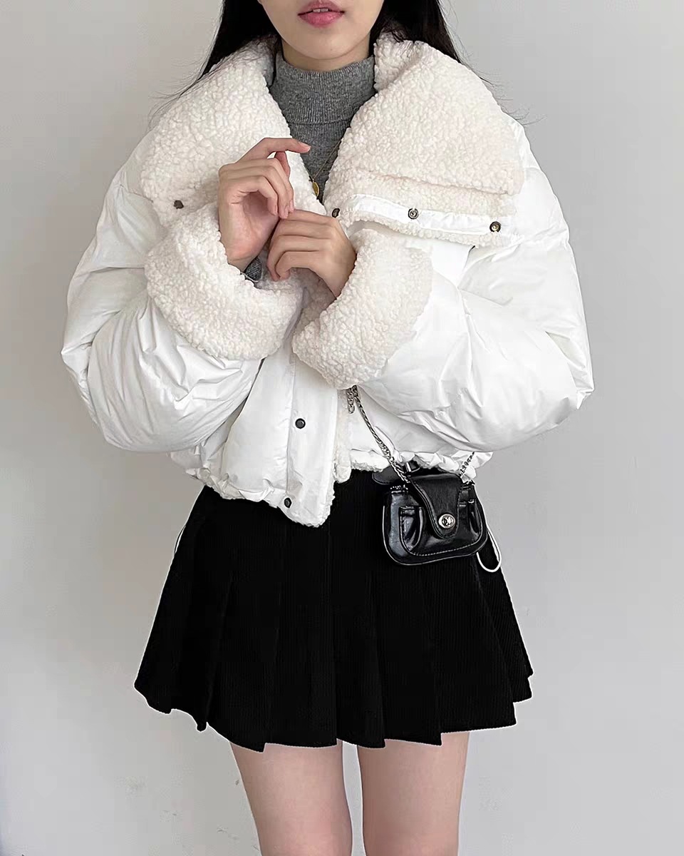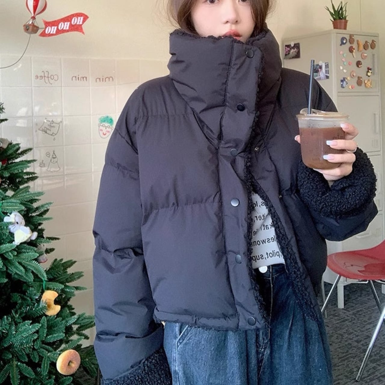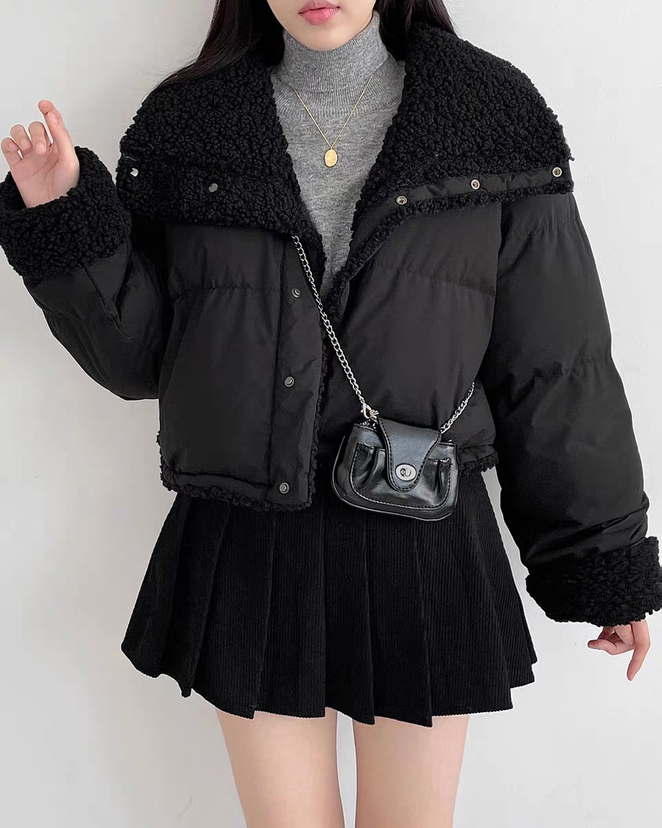 リバーシブル ボアジャケット レディース 韓国 ファッション 2way 中綿 ナイロン ボア 裏表 アウター ノーカラージャケット