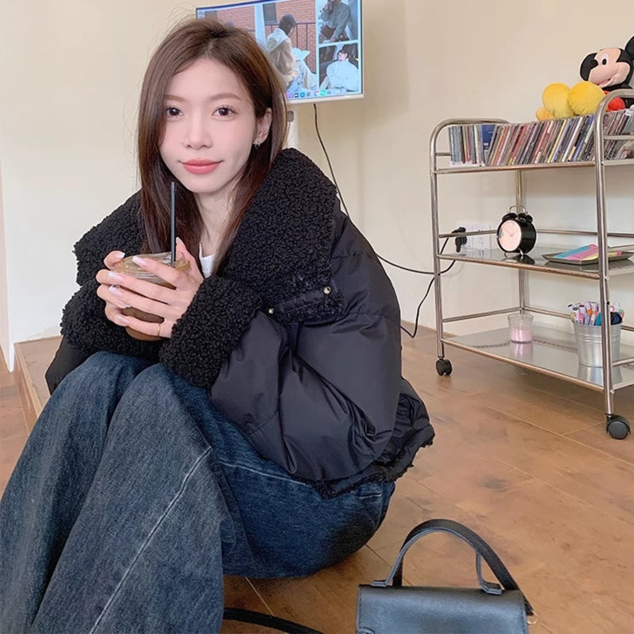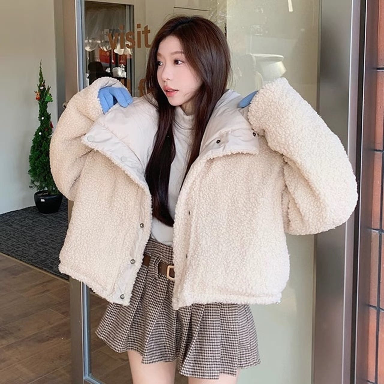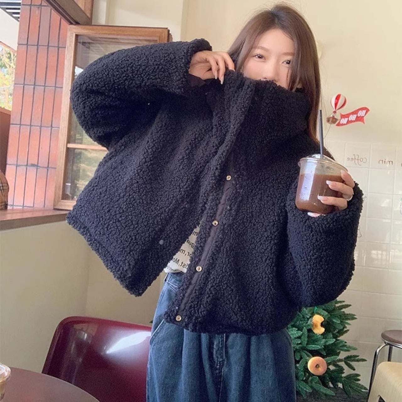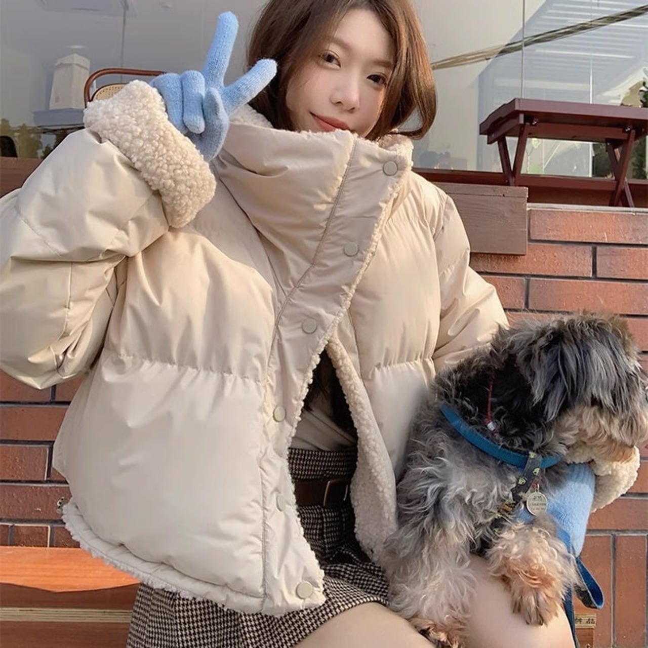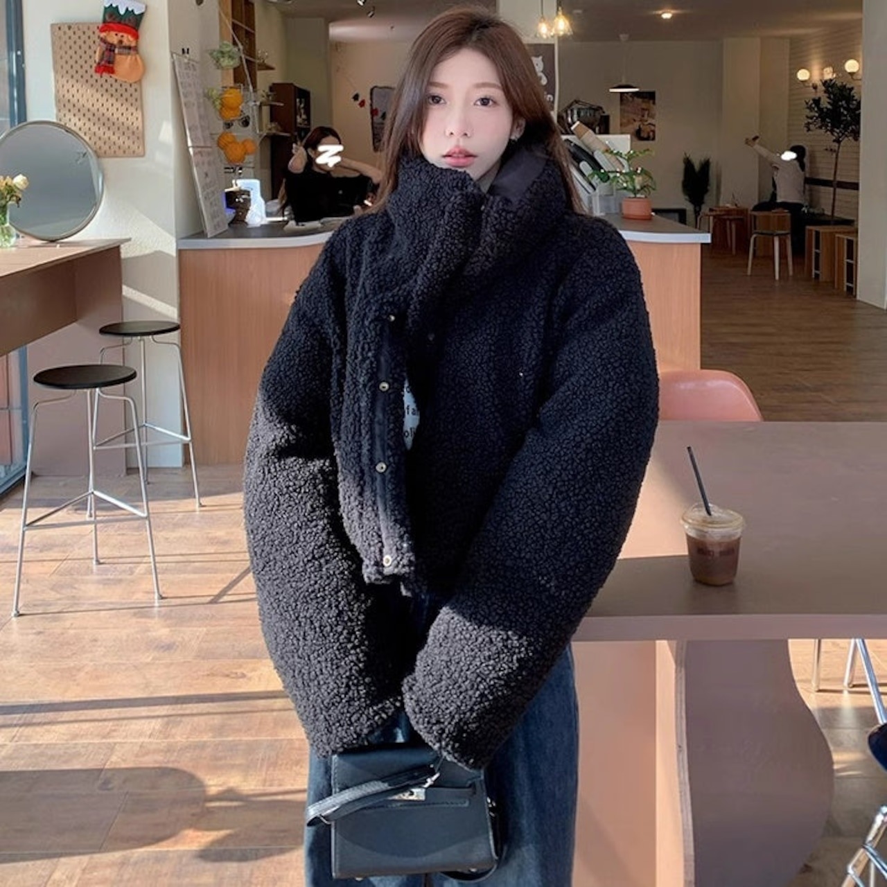 リバーシブル ボアジャケット レディース 韓国 ファッション 2way 中綿 ナイロン ボア 裏表 アウター ノーカラージャケット