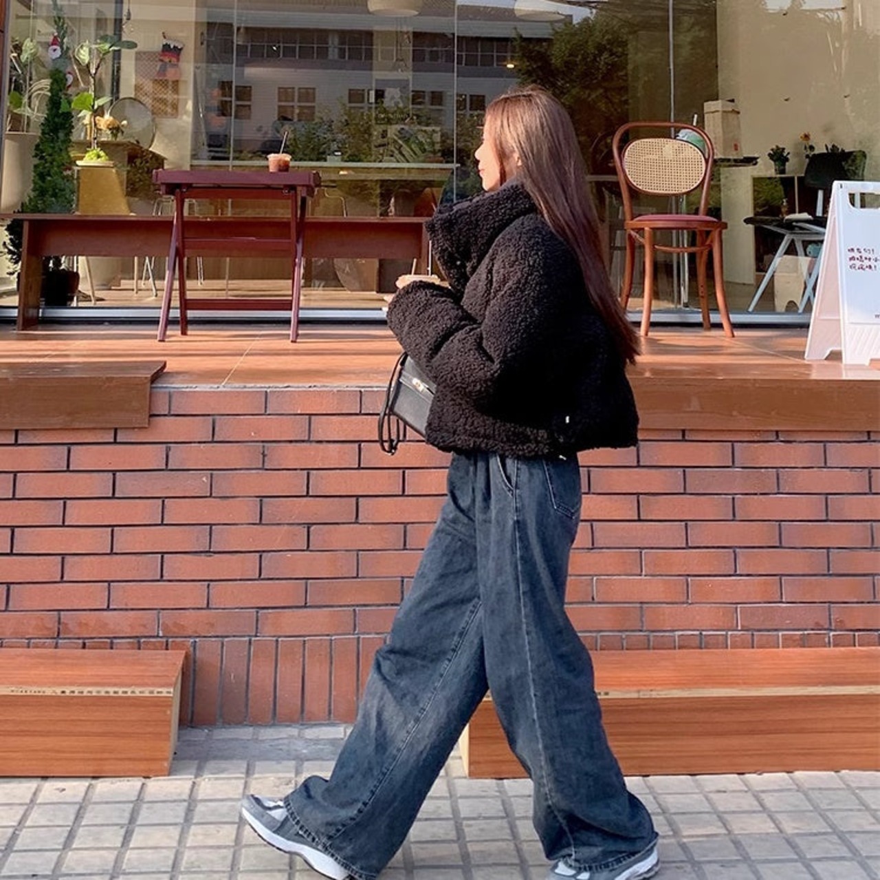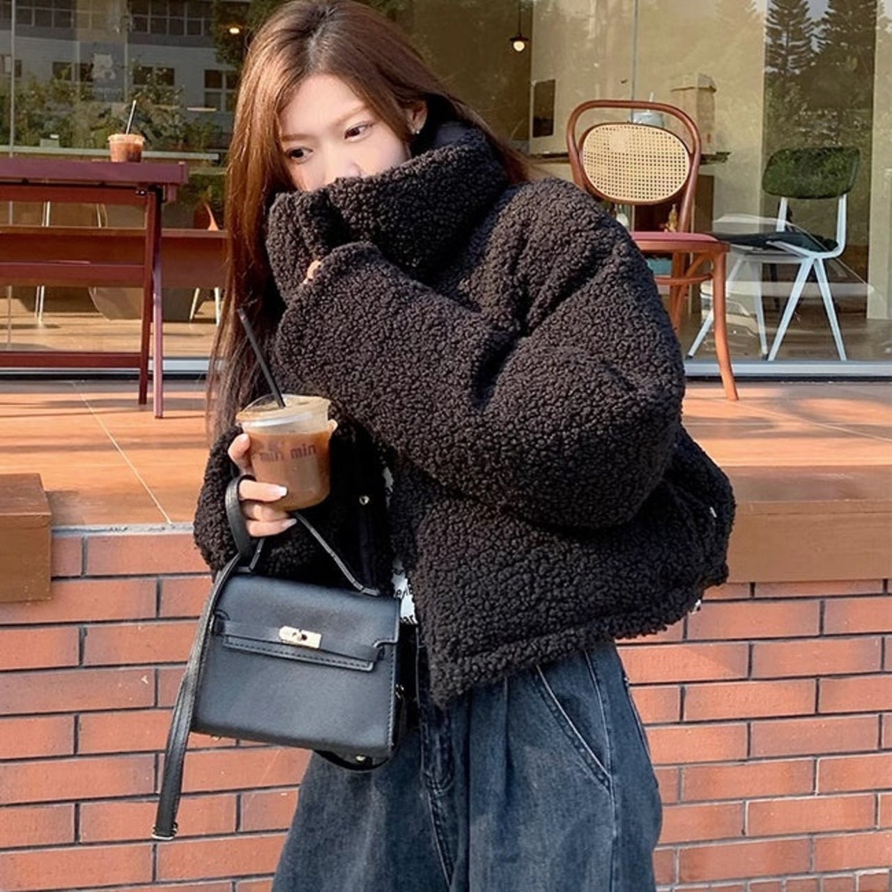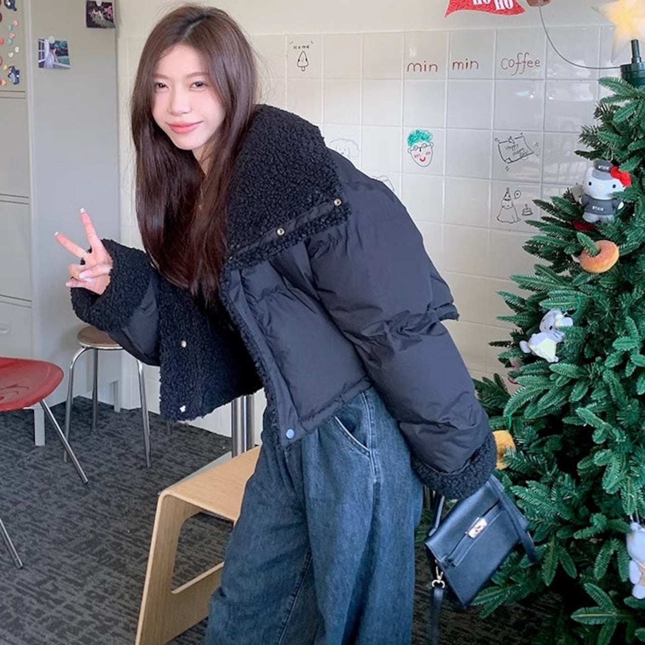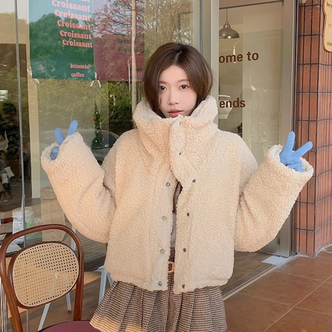 リバーシブル ボアジャケット レディース 韓国 ファッション 2way 中綿 ナイロン ボア 裏表 アウター ノーカラージャケット