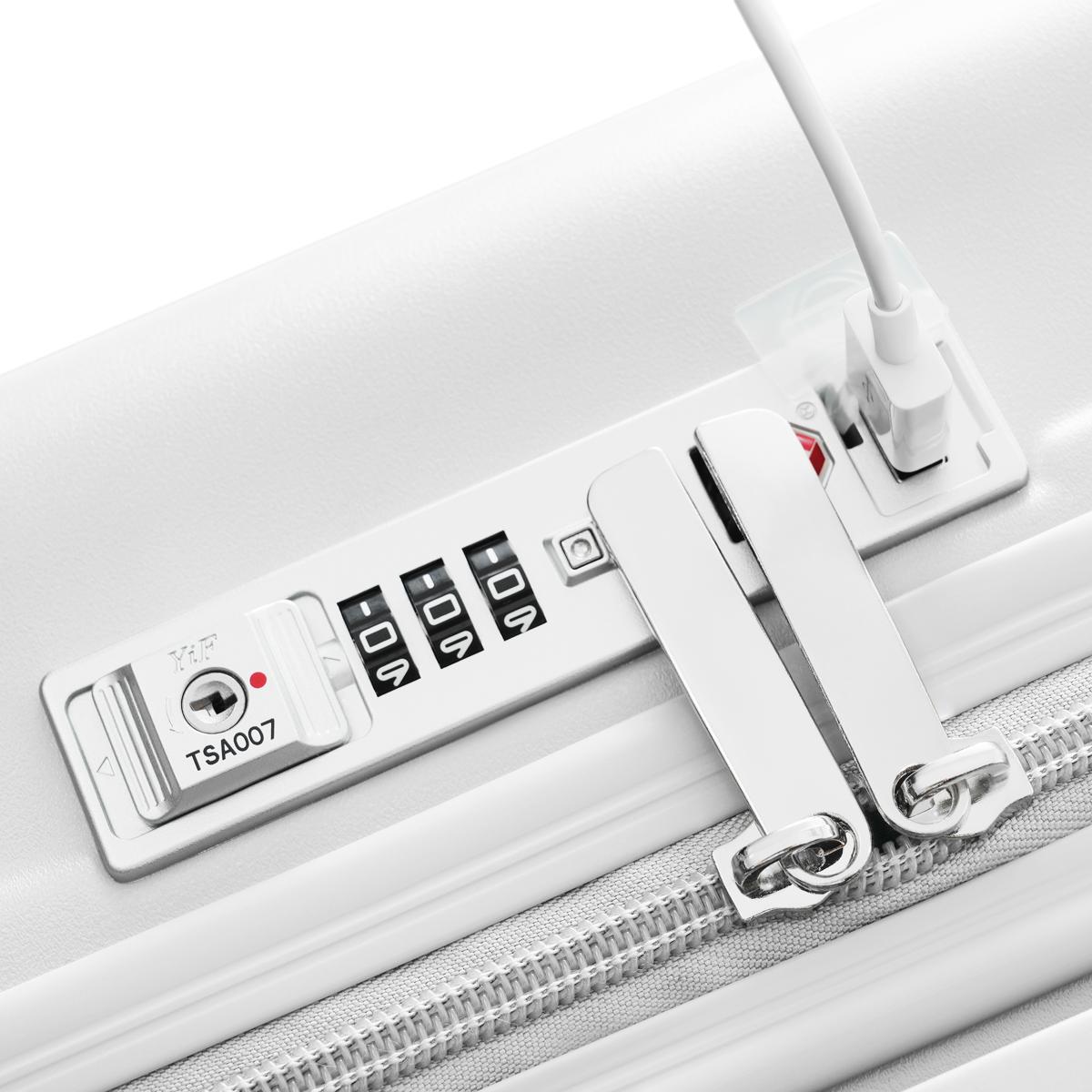 スーツケース Mサイズ フロントオープン ストッパー付き USBポート付き カップホルダー付き キャリーバッグ キャリーケース 4日~7日用 中型 フック付き TSAロック 超軽量 かわいい 旅行 海外 国内 suitcase China White