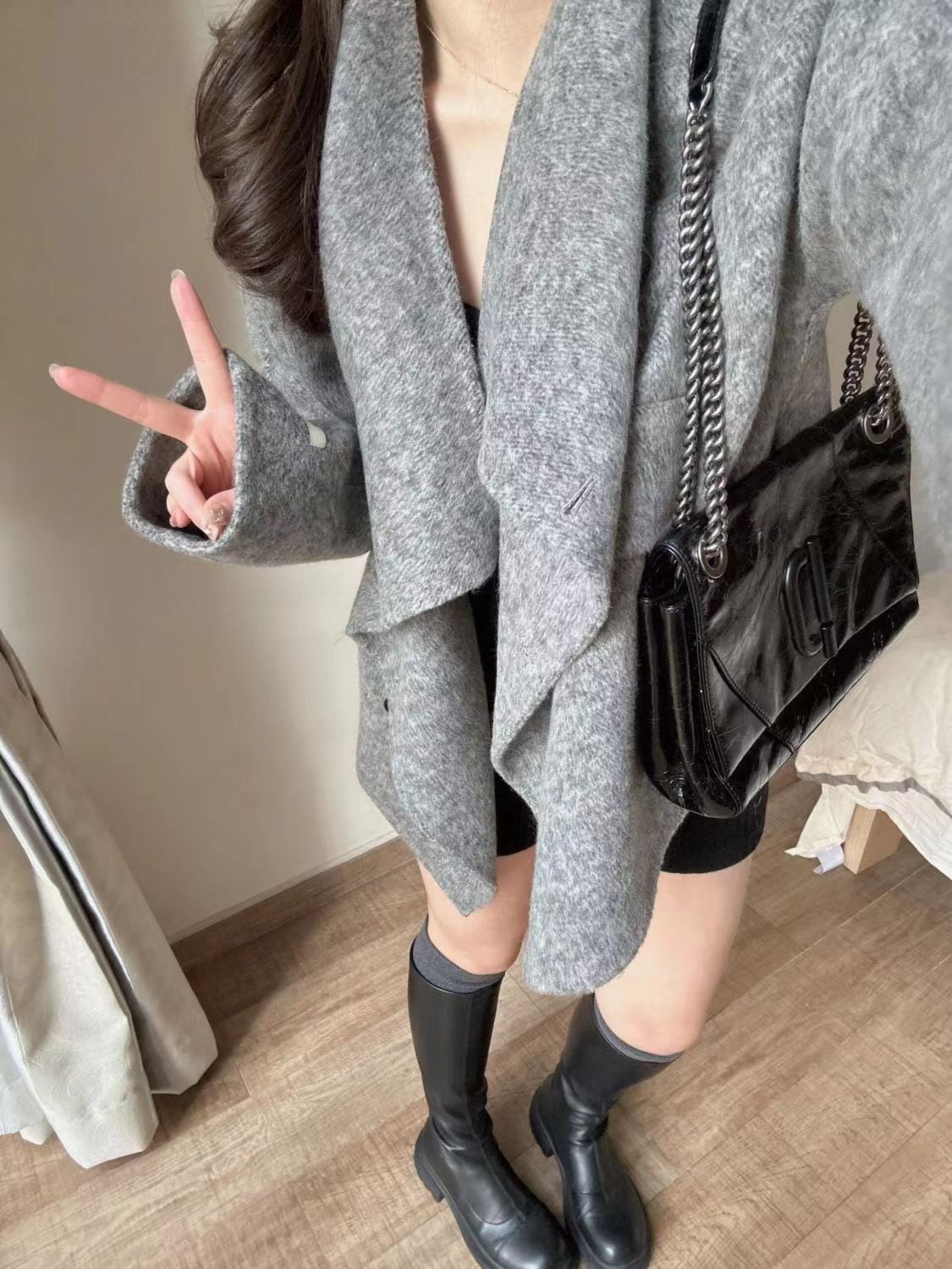 秋 アウター 韓国ファッション 通勤 レディース トレンチコート フレンチ高級感のあるリバーシブルコート女 新スタイル着痩せトップスゆったりラシャコート