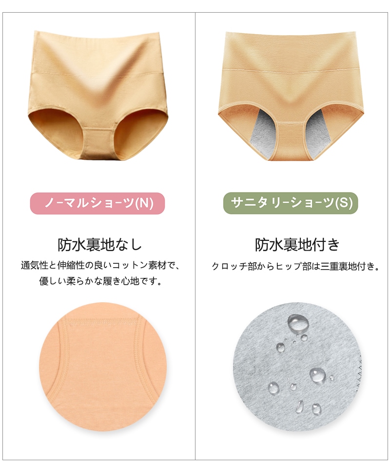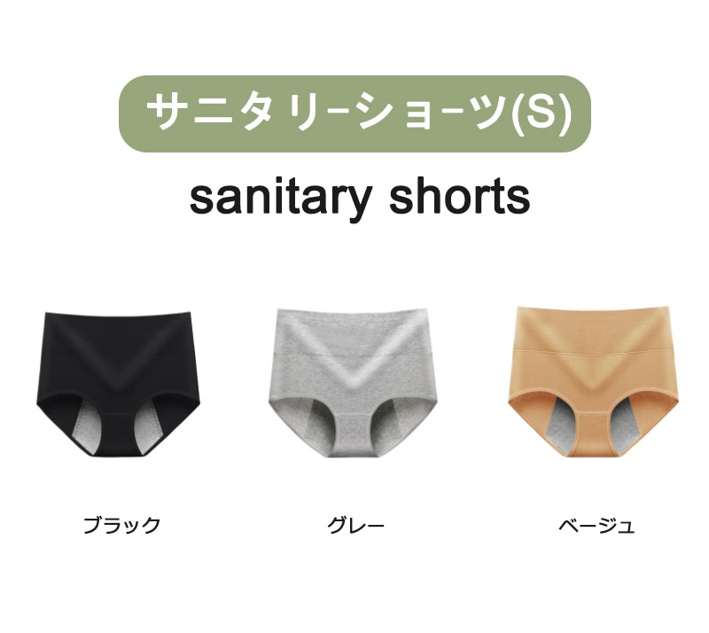 カラー: ブラック、グレー、ベージュ各1枚(Sサニタリーショーツ) ブラック3枚(Sサニタリーショーツ) ブラック3枚(Nノーマルショーツ) ブラック2枚、グレー1枚(Nノーマルショーツ) ブラック、グレー、ベージュ各1枚(Nノーマルショーツ) ブラック、グレー、ライトブルー各1枚(Nノーマルショーツ) グレー、ダークピンク、ベージュ各1枚(Nノーマルショーツ) ライトブルー、ライトピンク、ライトパープル各1枚(Nノーマルショーツ) ランダム色3枚(Nノーマルショーツ)