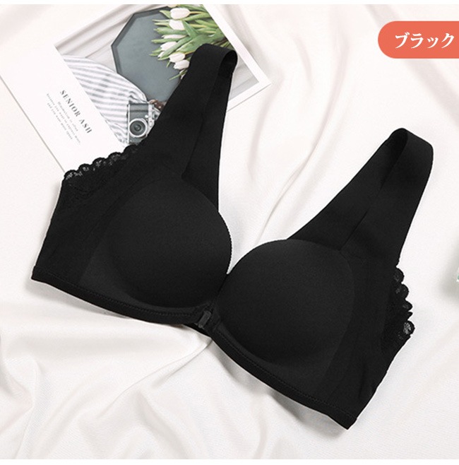 レース ナイトブラ フロントホックブラ ブラジャー スカラップ 美胸 24時間使える バストアップ ノンワイヤー シームレス インナー 下着 ストレスフリー リラックスブラ 前ホック 女性 肌