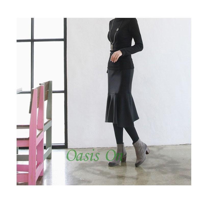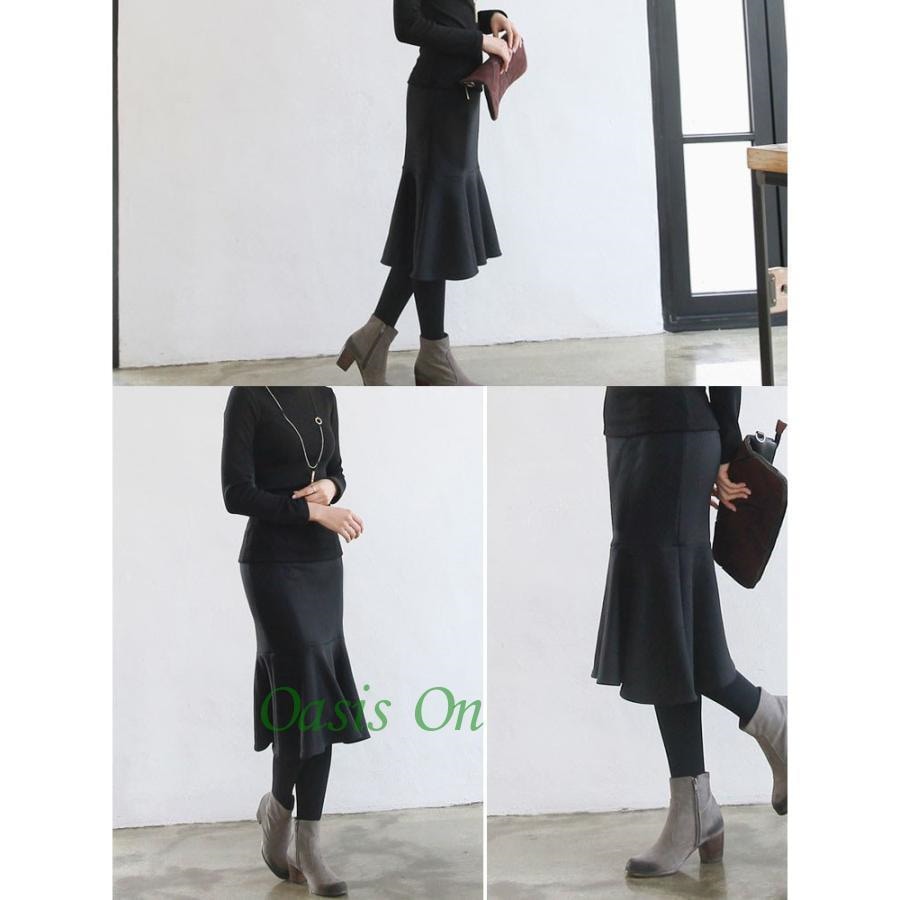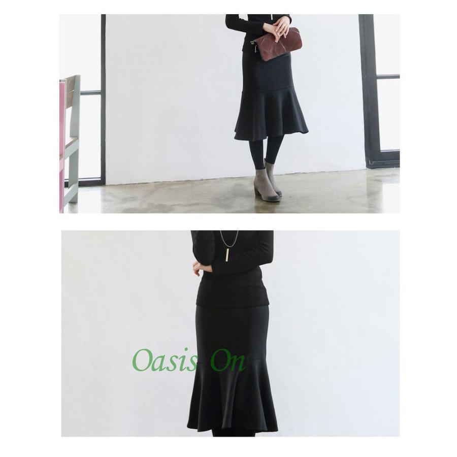 大人の魅力 スカート レディース 膝丈 秋冬 裏起毛 タイトスカート ウエストゴム マーメイド ハイウエスト ブラック 黒 無地 大きいサイズ きれいめ オシャレ