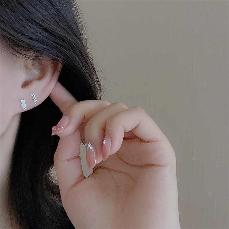 3日出荷 2個セットイヤースタッド イヤリング ピアス 魚の骨 ネコ匹 レディース シルバー 韓国 フラワーズ 軟骨ピアス ピアス