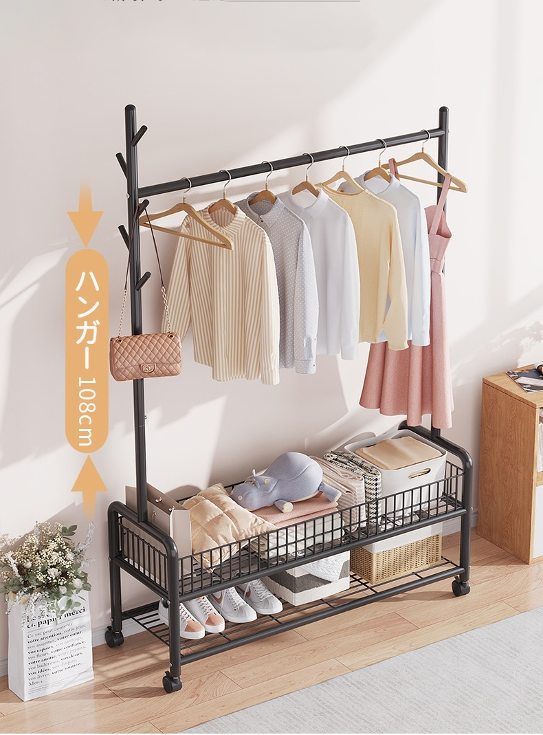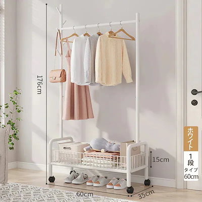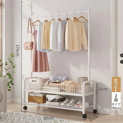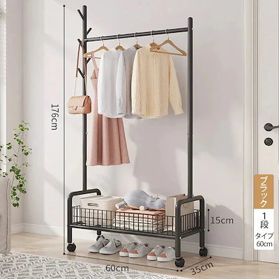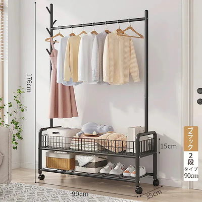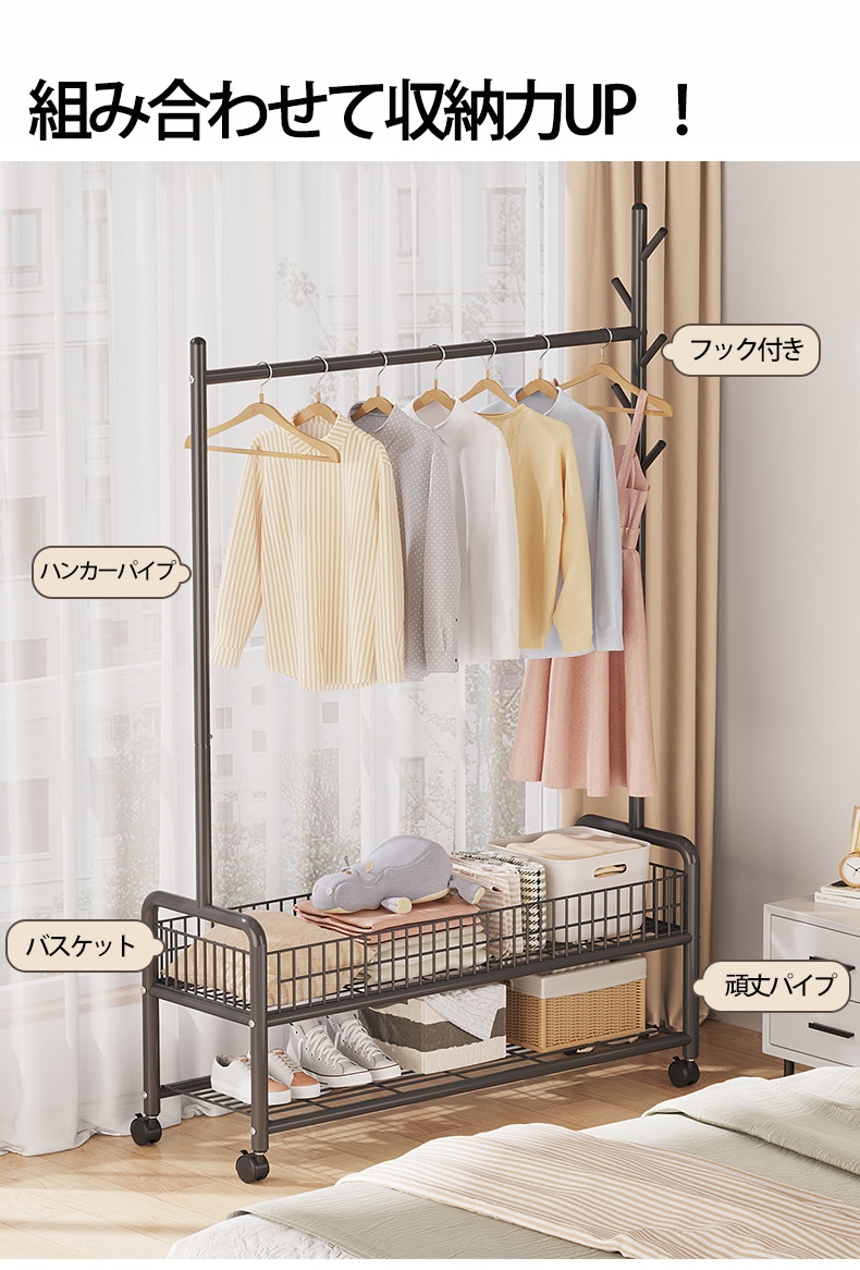 新品掲載 ハンガーラック 頑丈 幅60cm 90cm 棚付き キャスター付き コートハンガー バスケット 洋服掛け コート掛け 収納 多機能 大容量 組立品 たっぷり収納30%までに制限