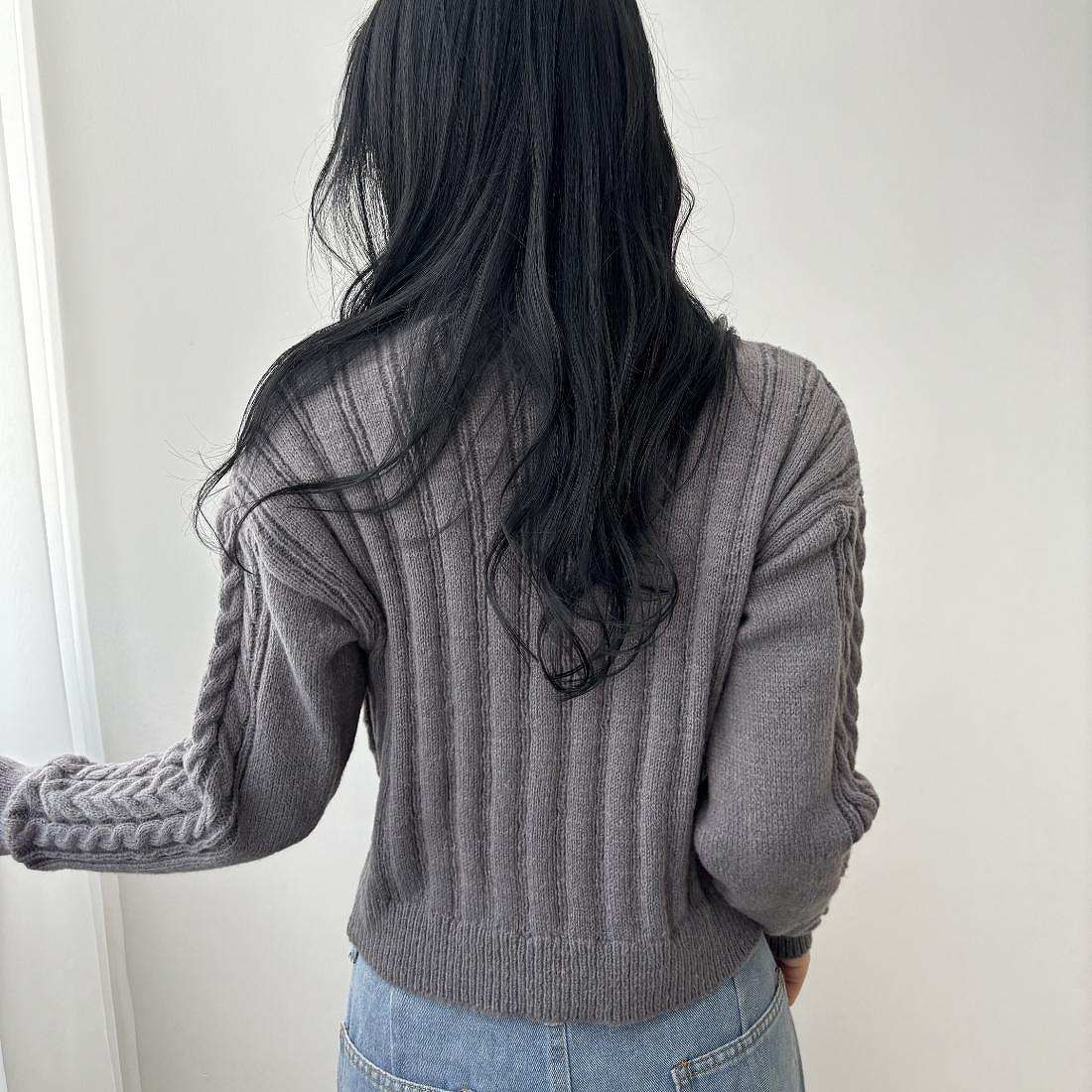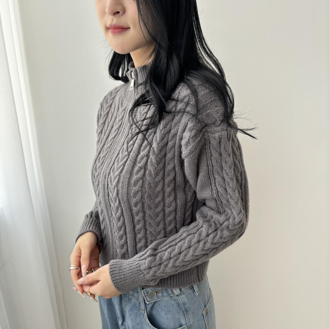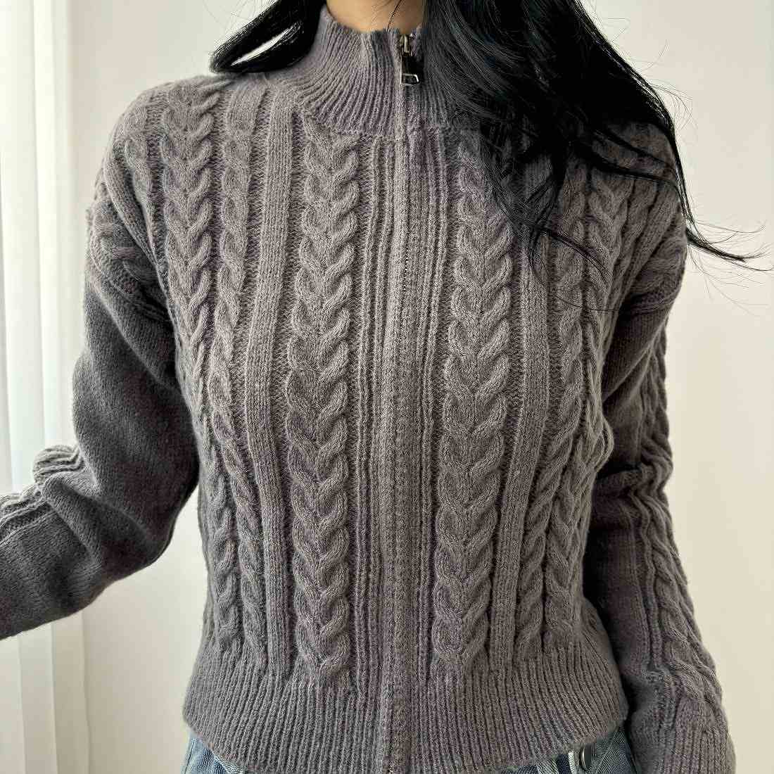ダブルジップのショート丈ニット ケーブルニット ニット ショート丈 ダブルジップ レイヤード シンプル カジュアル おしゃれ レディース 秋冬冬冬 ロングシーズン デイリー おでかけ