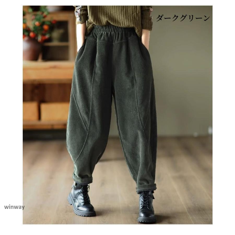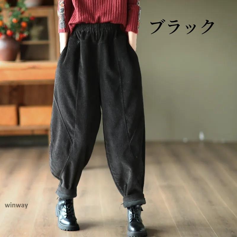 パンツ レディース ロングパンツ 裏起毛 秋冬 テーパードパンツ 無地 ワイドパンツ ボトムス ガウチョ コーデュロイ ウエストゴム 裏ボア 暖かい 防寒 保温