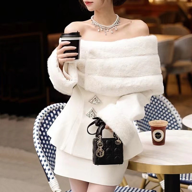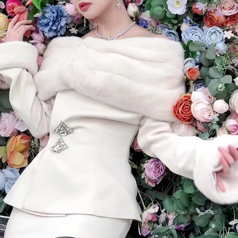 お嬢様可愛いファーコート人気セットアップフォーマル上下セットファーコート+スカート セットアップ