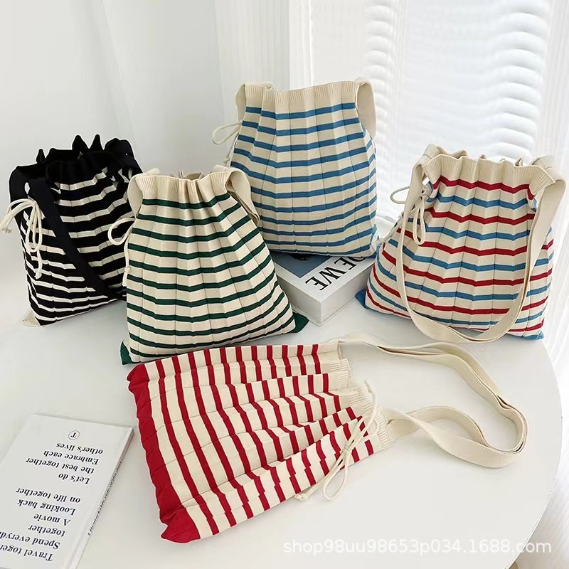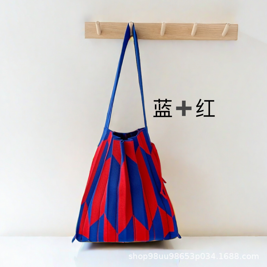2025 エコバッグ 大容量 ニット折り畳みバッグ 鮮やかカラー デイリー 虹のしわ サブバッグ ハンドバッグ シングルバッグ コンパ トートバック 韓国ファッション
