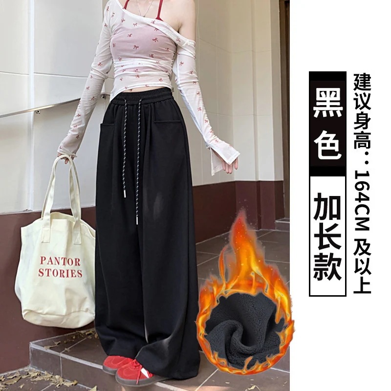 激壳れ人気商品ワイドパンツ 韓国ファッションワイドパンツ女性秋冬パッド入り新作ストレートカジュアルルーズパンツ ロングパンツ