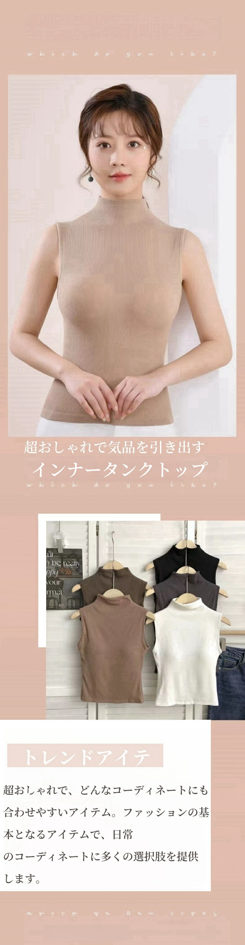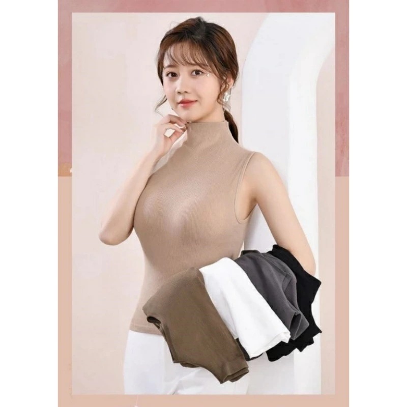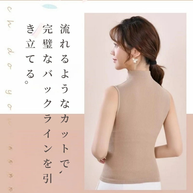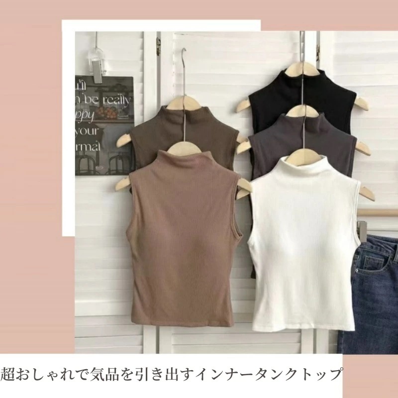 ハイネック ノースリーブ タートルネック タンクトップ 袖なし レディース Tシャツ カットソー インナー メッシュ パワーネット オシャレインナー ブラ付き 韓国風