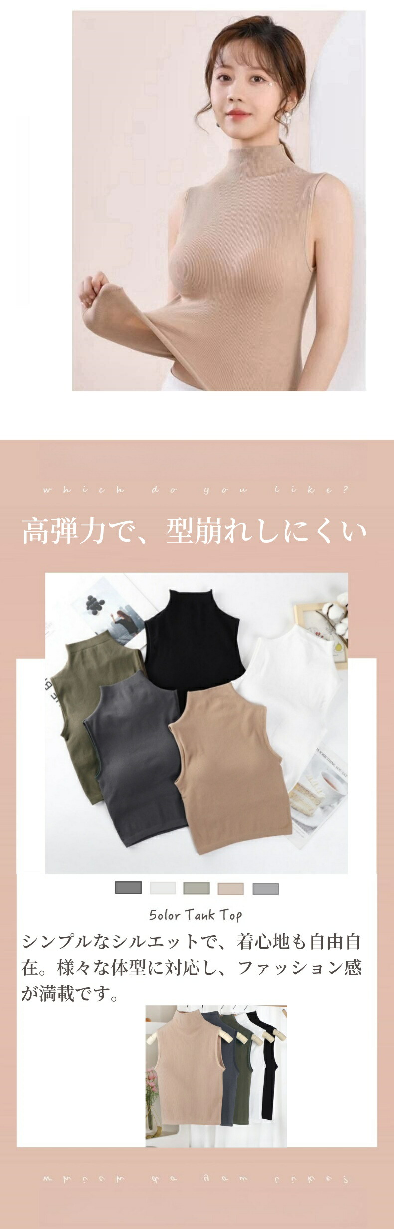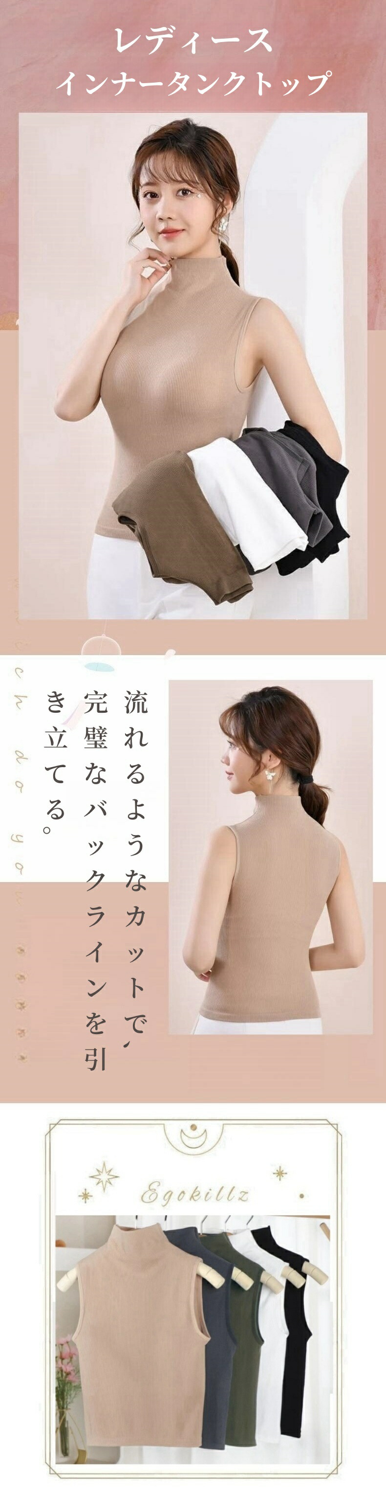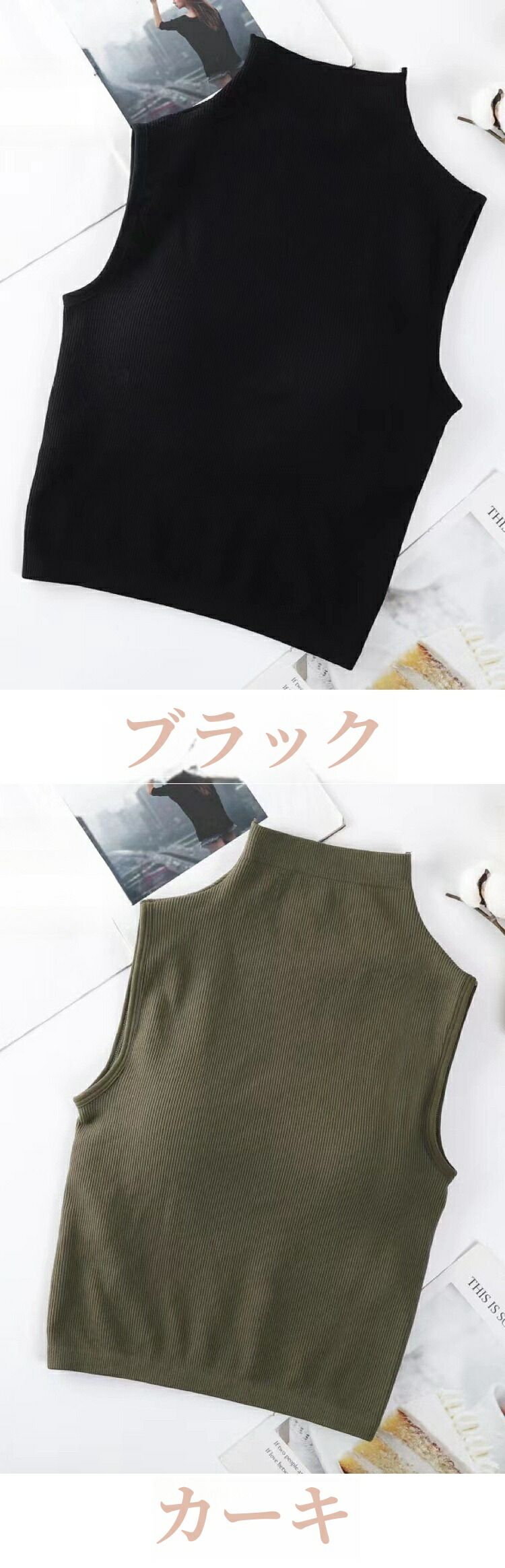 ハイネック ノースリーブ タートルネック タンクトップ 袖なし レディース Tシャツ カットソー インナー メッシュ パワーネット オシャレインナー ブラ付き 韓国風