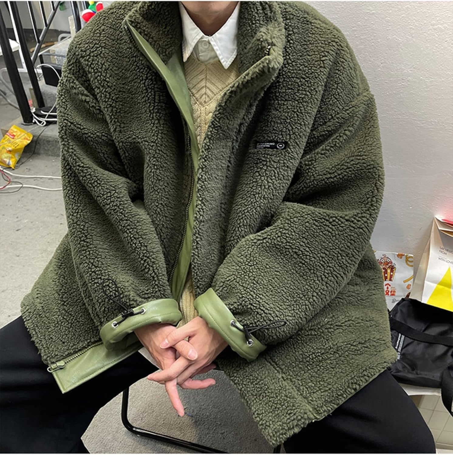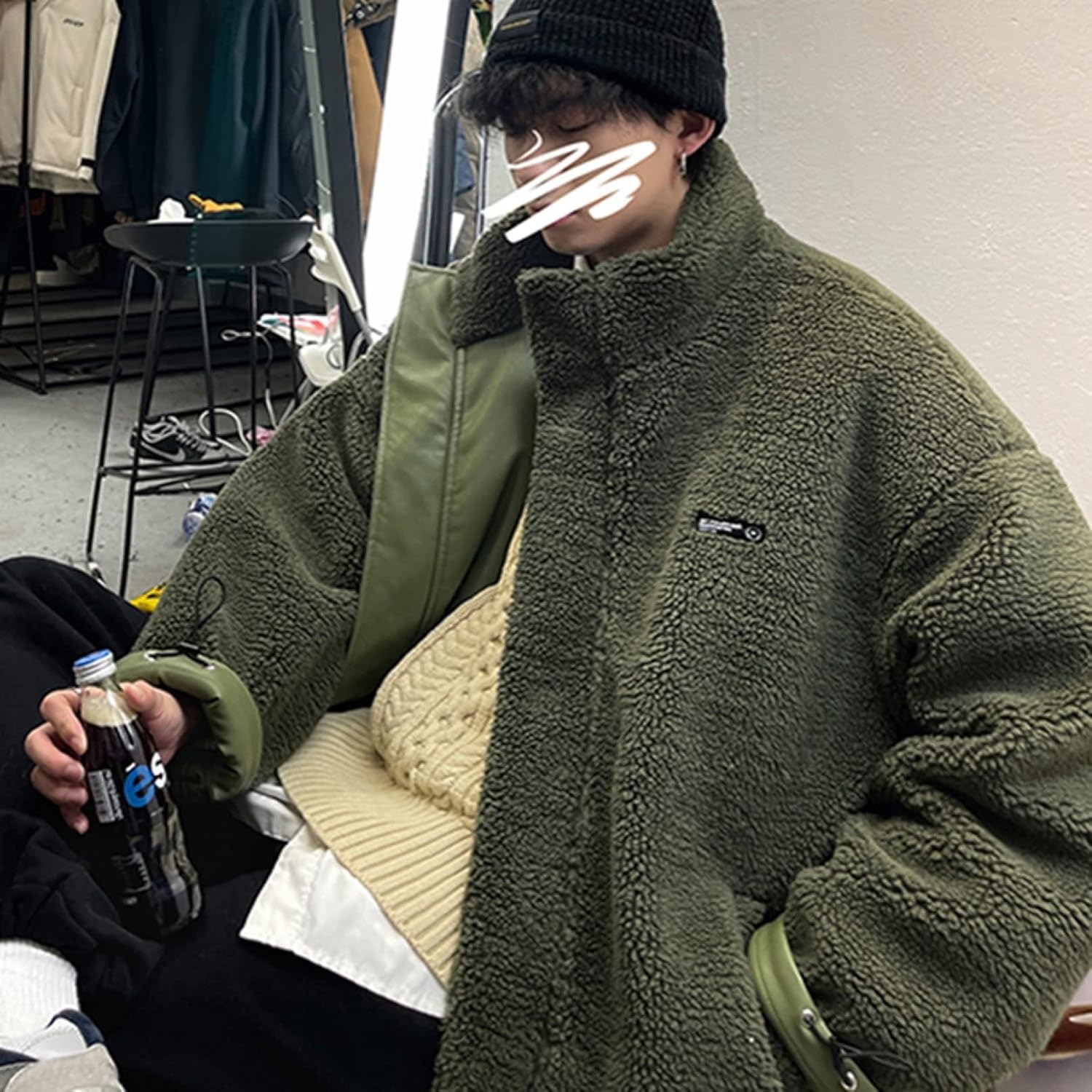 両面着 ボアブルゾン ボアジャケット メンズ フルジップ 撥水 リバーシブル 秋冬服 カジュアル コート 厚手 保温 暖かい グリーン ホワイト ブラック 無地 シンプル フリース ウインド