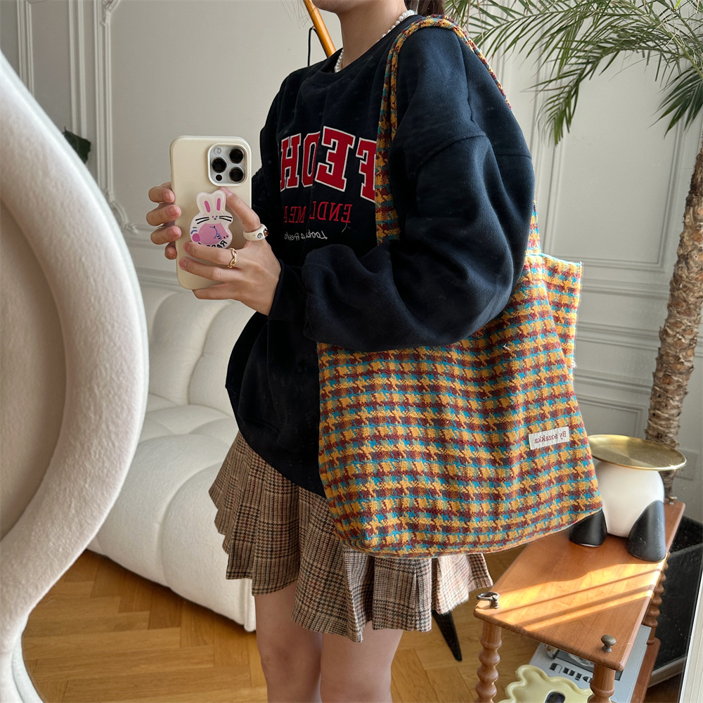 2025 エコバッグ 大容量 インス キャンバスバッグ レディース ツイード カジュアル トートバック 韓国ファッション エコバッグ