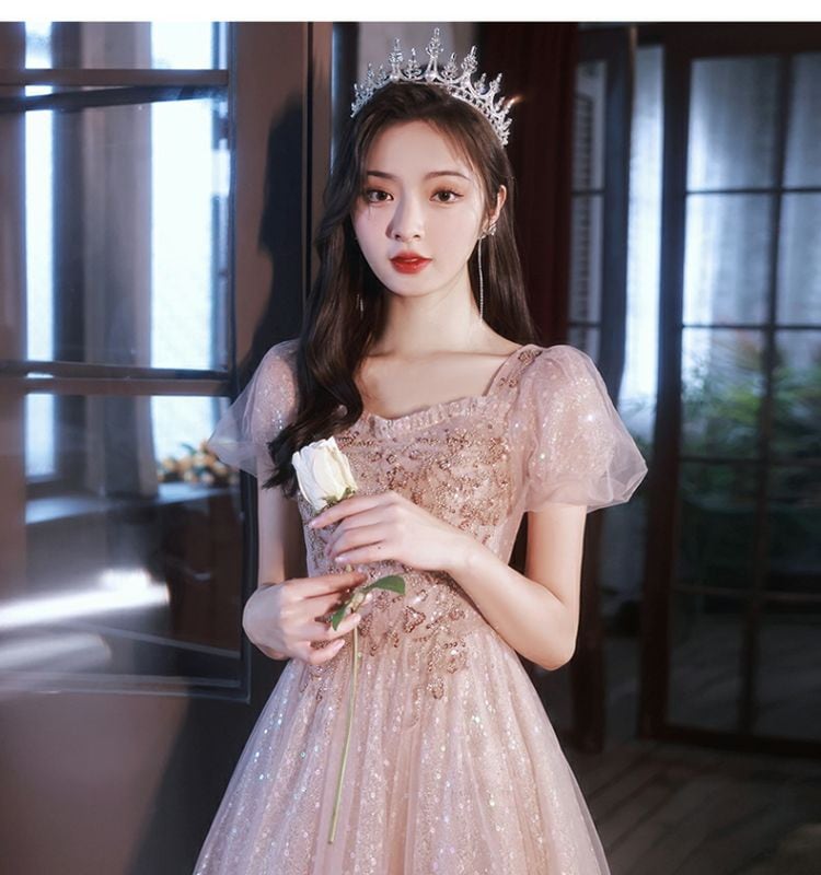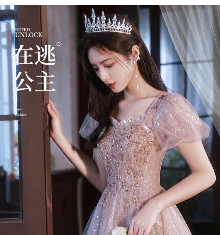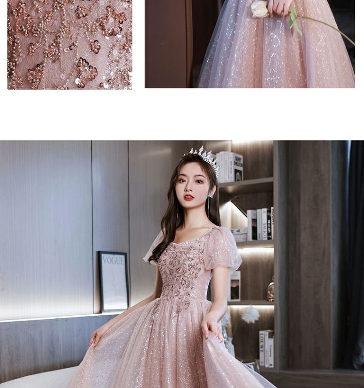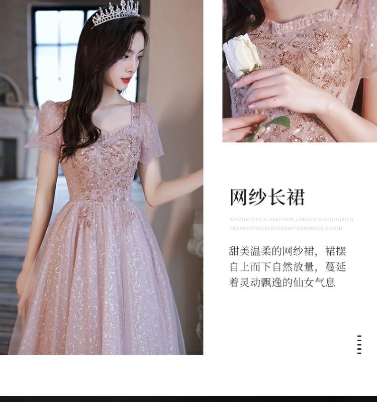 ピンクのイブニングドレス女宴会気質高級感司会者ロング生日会 結婚式 演奏会 発表会 卒業式 成人式 同窓会 ドレス ドレス