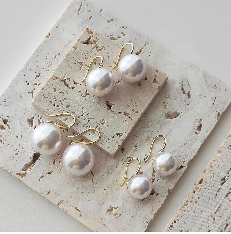 ピアス 16 mm大パールイヤーフック14 kゴールドピアスレトロな雰囲気の秋人気のピアス ピアス