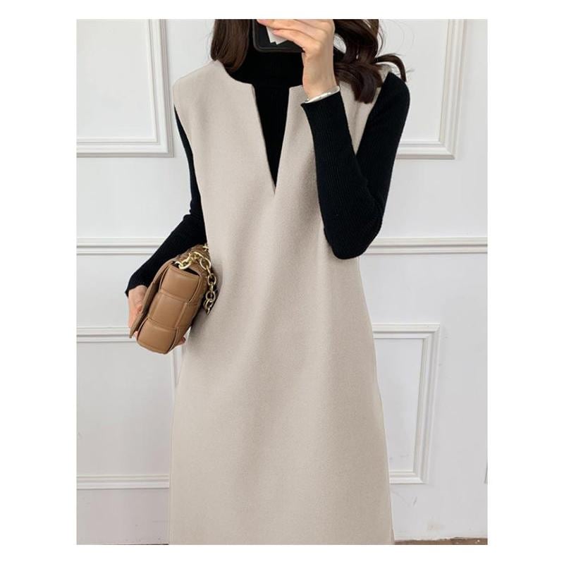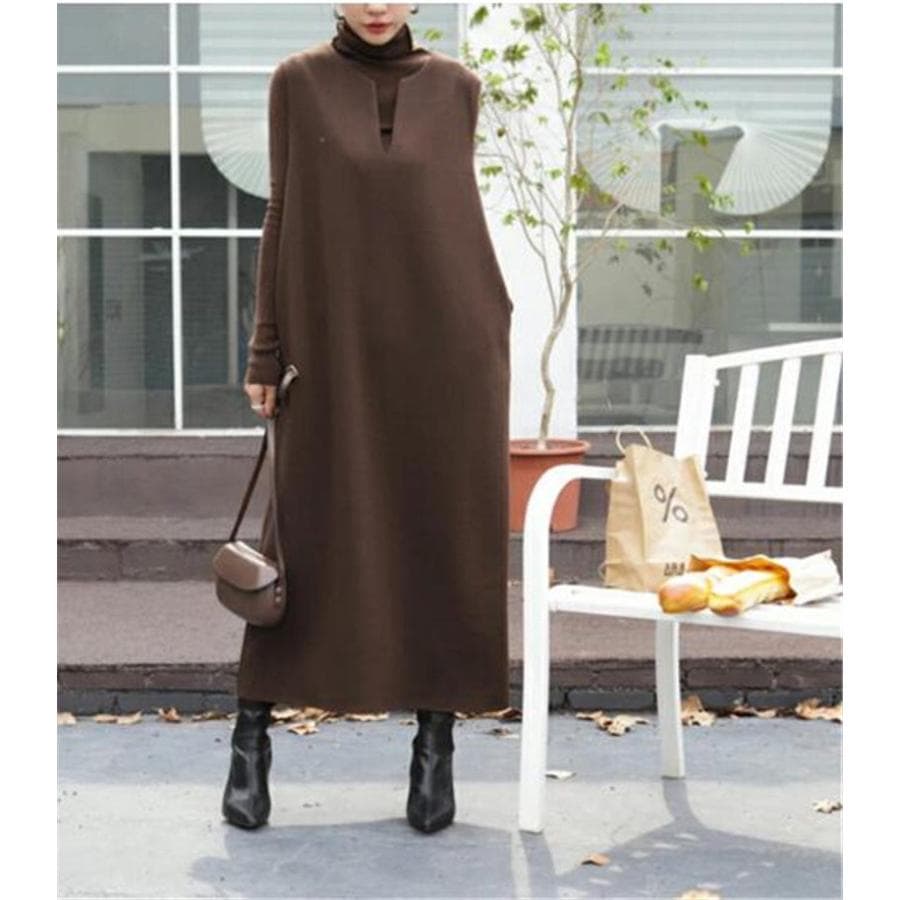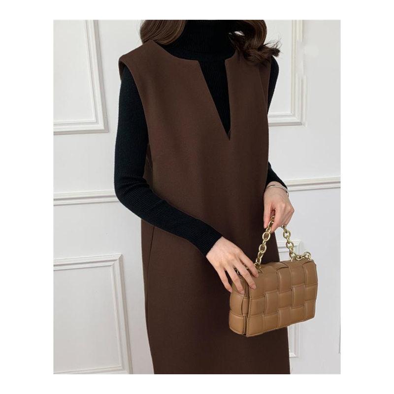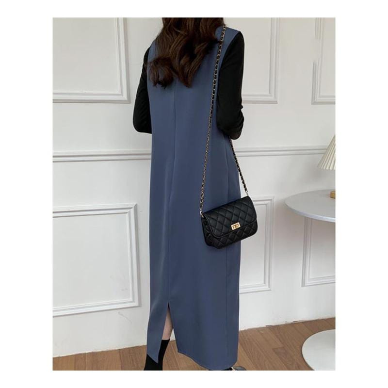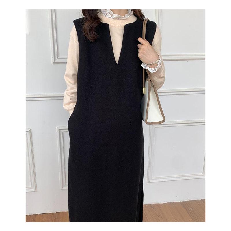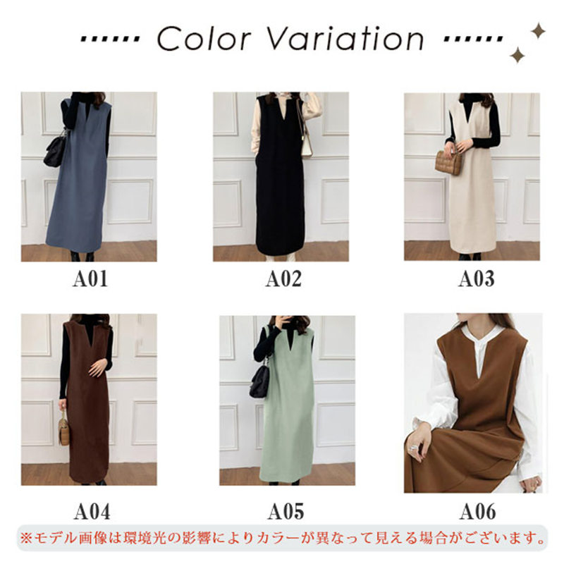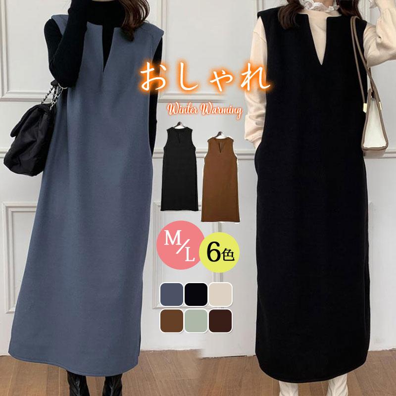 ワンピースジャンパースカートレディースジャンスカ深VネックロングワンピースVネックスリット入りおしゃれ可愛い体型カバー キャミワンピ