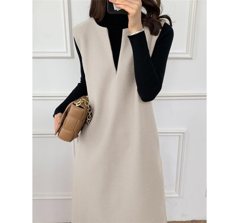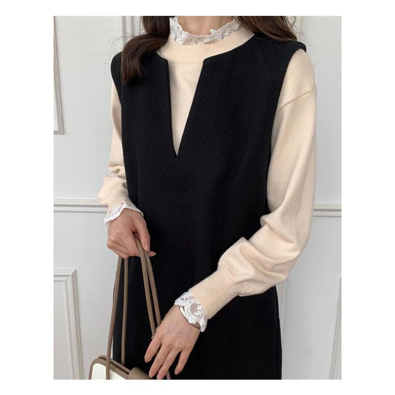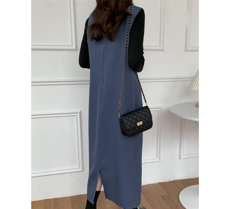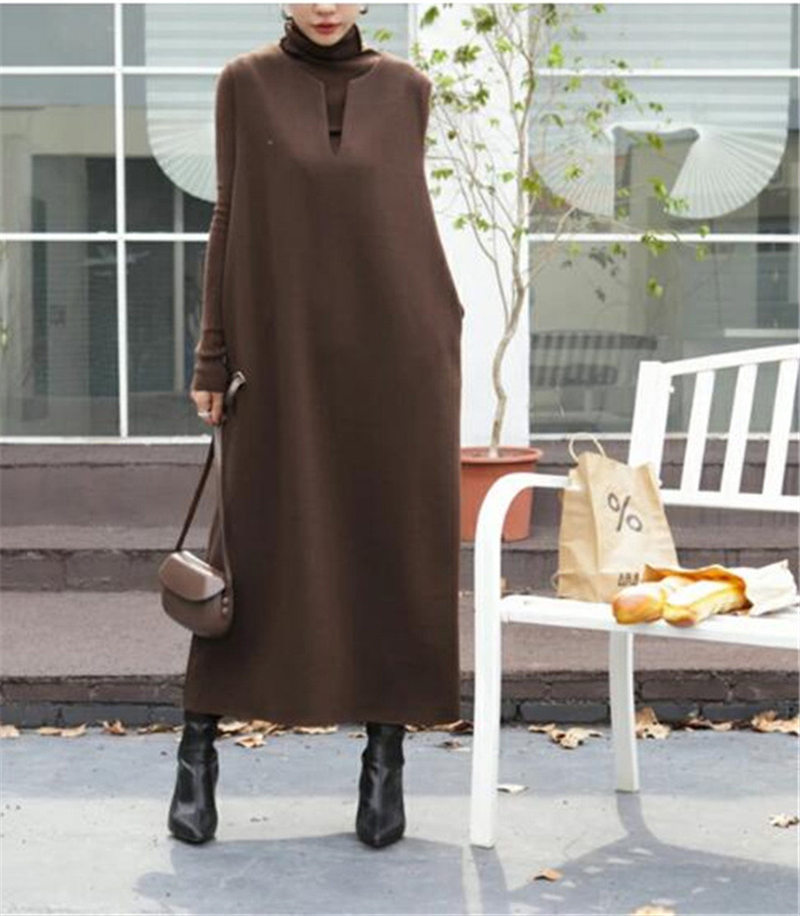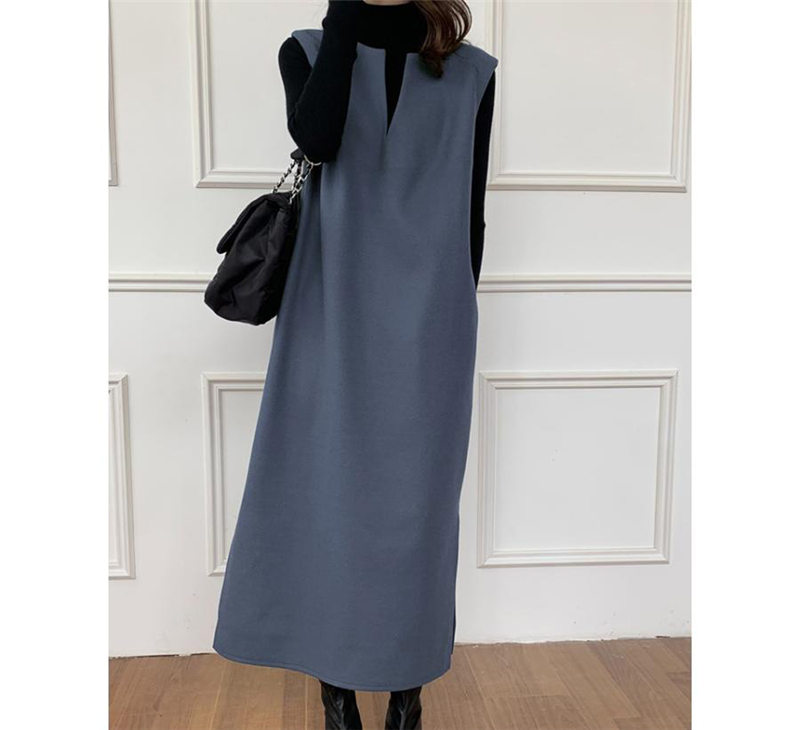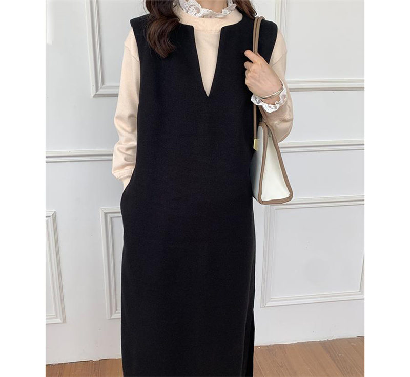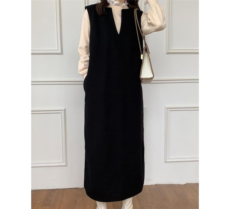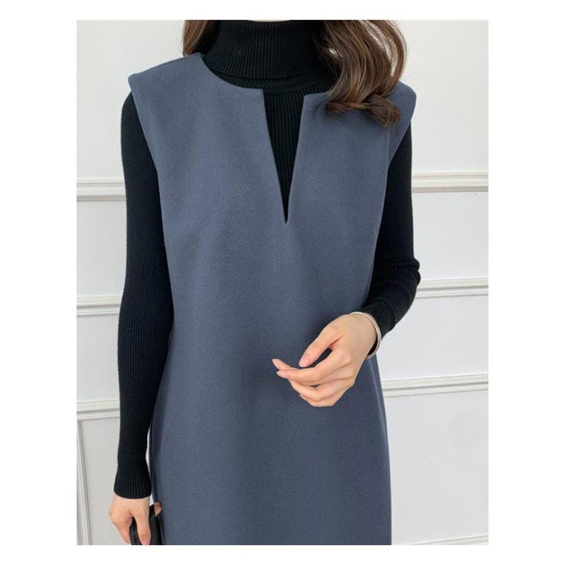 ワンピースジャンパースカートレディースジャンスカ深VネックロングワンピースVネックスリット入りおしゃれ可愛い体型カバー キャミワンピ
