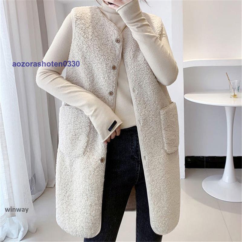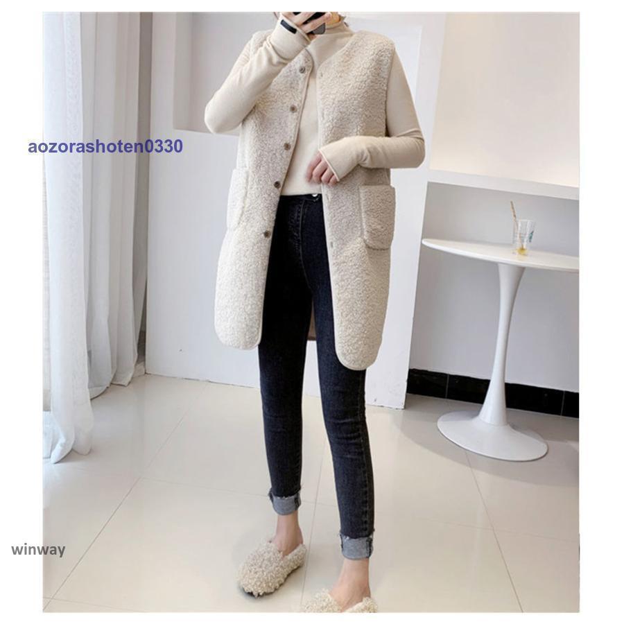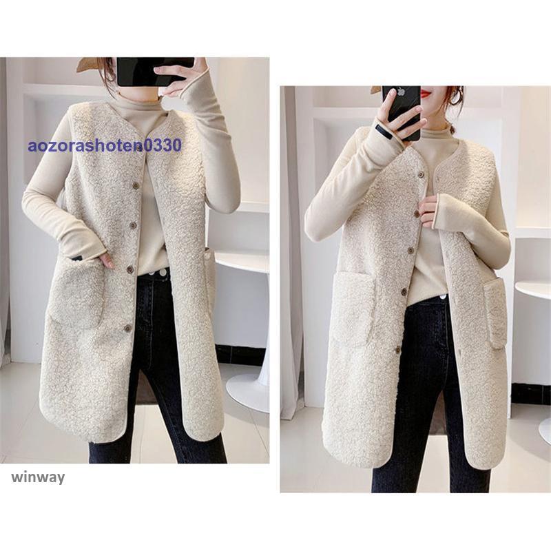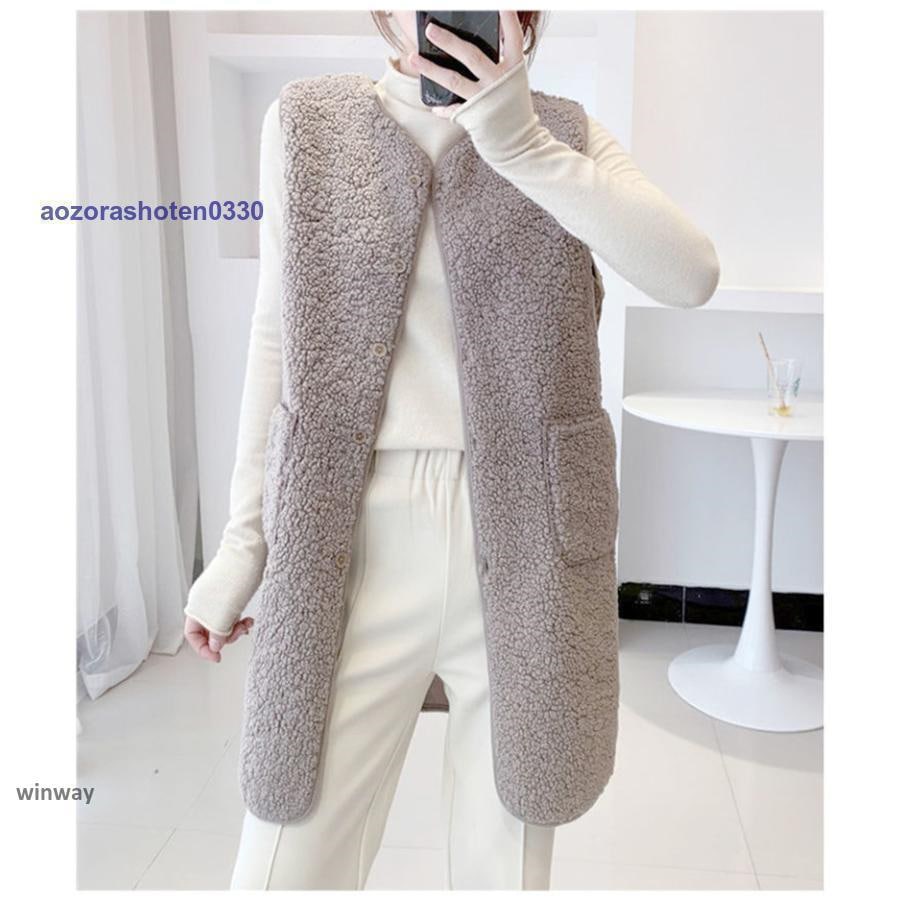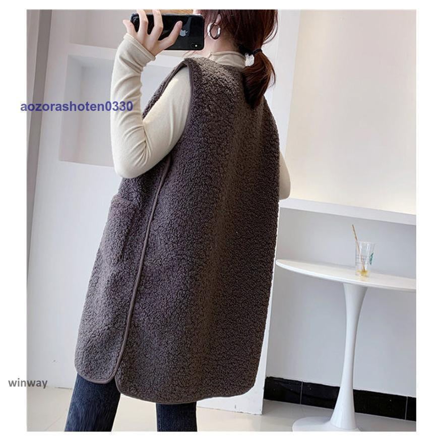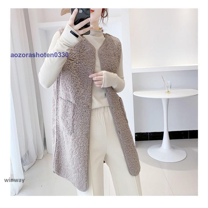 ボアベスト レディース フリースベスト ロング ジャケット コート アウター 前開き チョッキ もこもこ 保温 防寒 暖かい 秋冬 着痩せ 通勤 通学