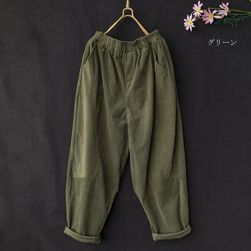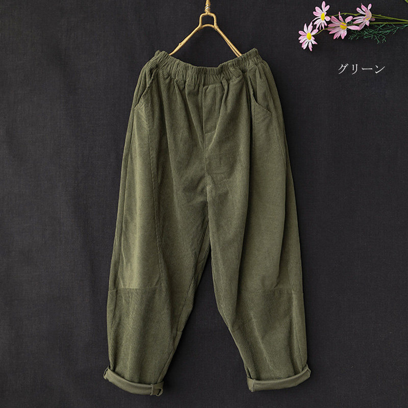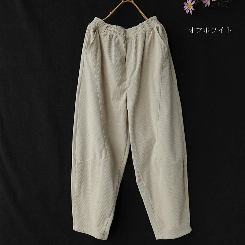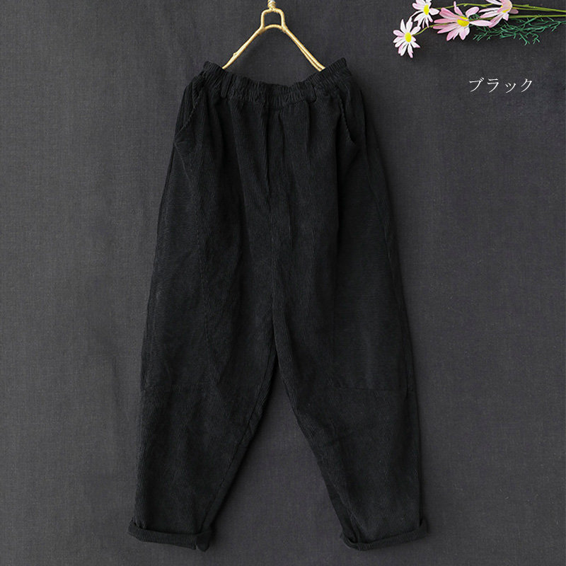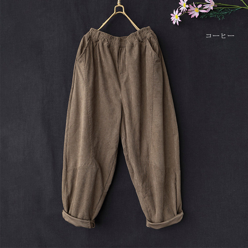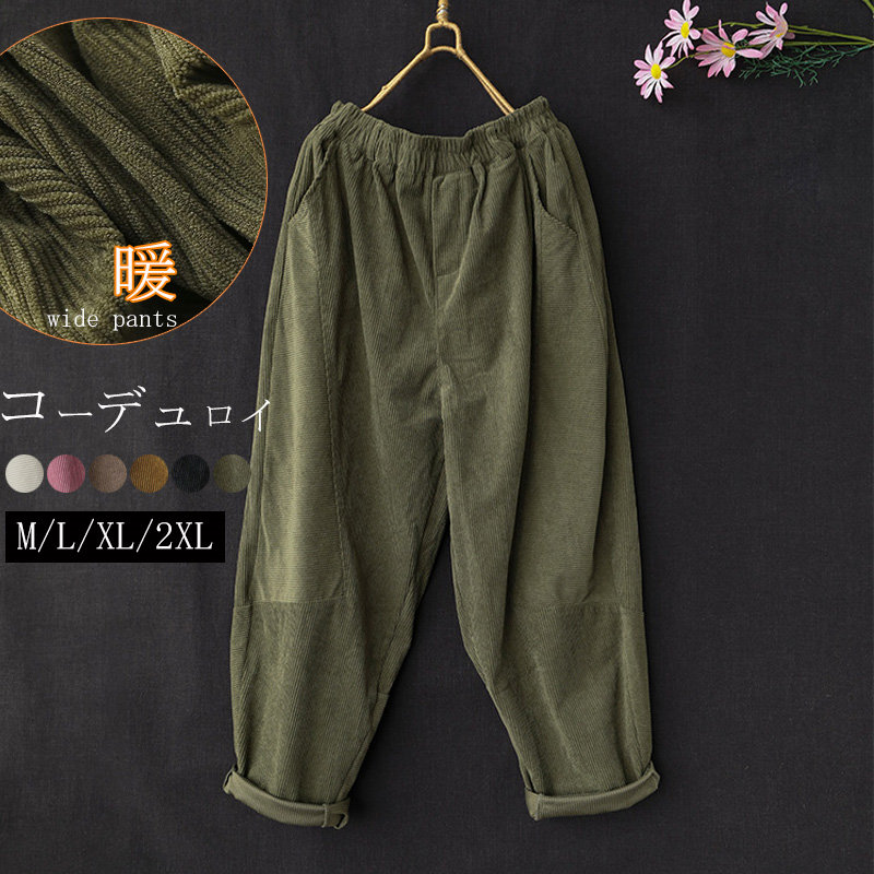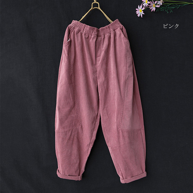 サルエルパンツ レディース 冬 パンツ コーデュロイ ワイド ロングパンツ ウエストゴム 秋冬 パンツ ロング コクーン タックパンツ パンツ きれいめ ボトムス テーパードパンツ ハロンパンツ ハイ