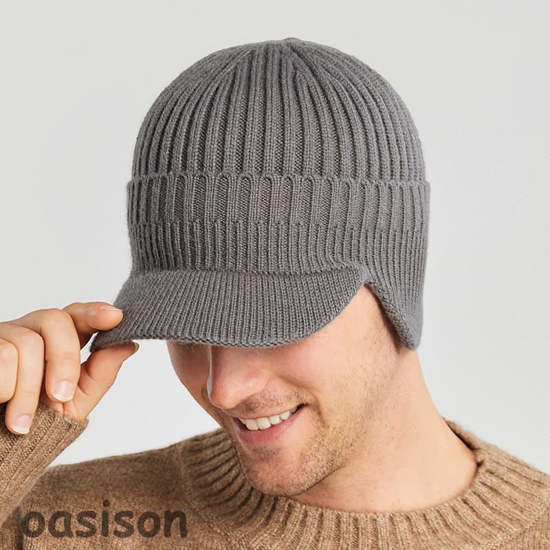 人気沸騰新柄追加 ニット帽 メンズ つば付き 耳あて付き 裏起毛 ニットキャップ ビーニー シンプル 帽子 無地 秋冬 防寒 保温 暖か おしゃれ 通勤 アウトドア