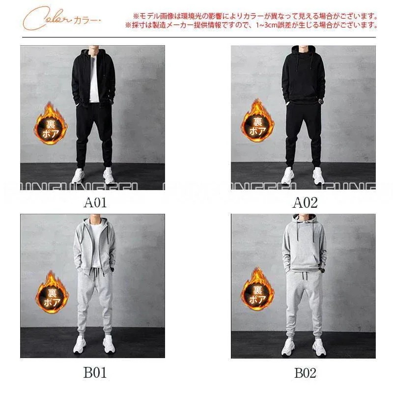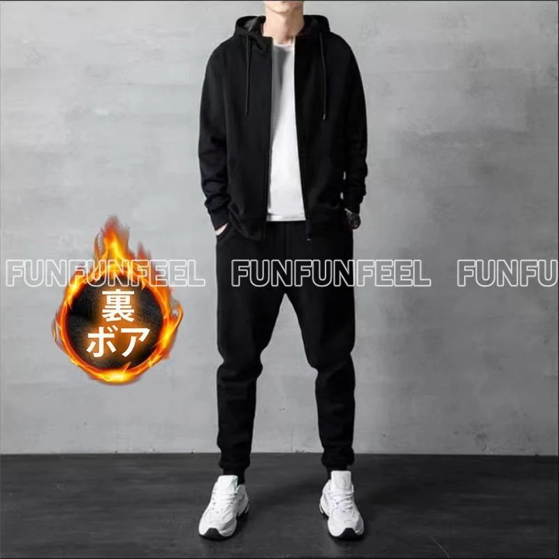 ジャージ メンズ 上下 スウェット上下 セットアップ 上下セット 裏ボア 裏起毛 プルオーバー 前開き 部屋着 ウエア トレーニングウェア 秋服 冬 長袖