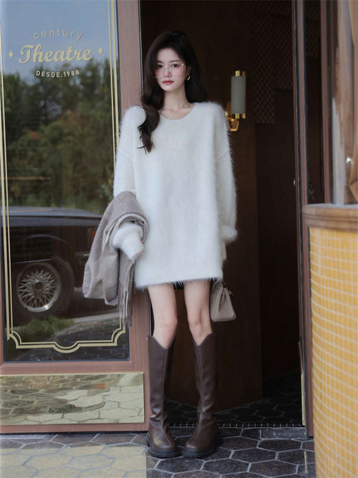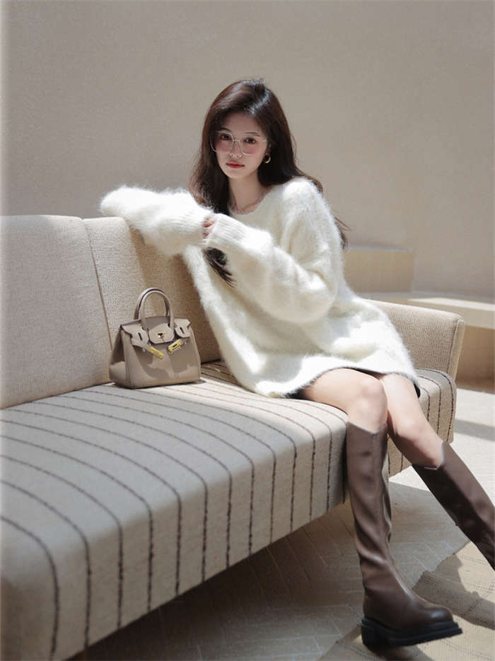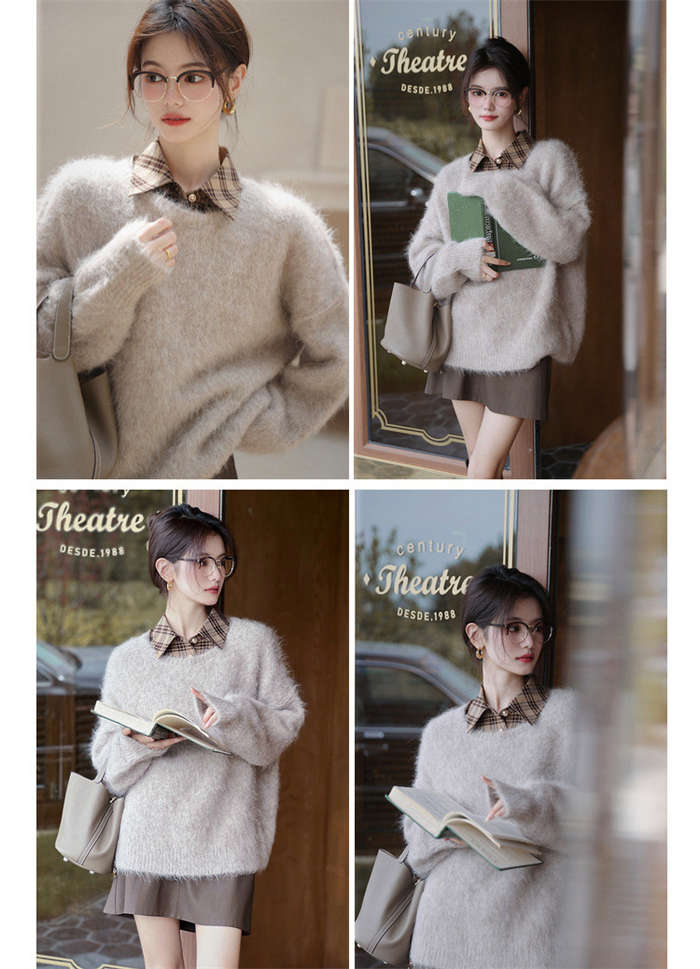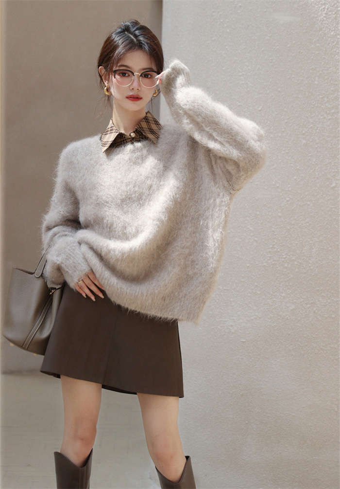 ニットセーター レディース 秋冬 シャギーニット モヘア ニット 長袖 セーター 長袖セーター プルオーバー ニットソー インナー 秋 冬 ニットトップス 無地 ふわふわ もこもこ シャギー トップス