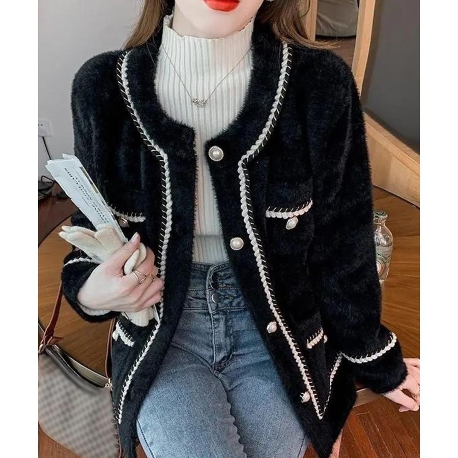 人气 新作 モヘアカーディガン秋冬 ファージャケット ツイードジャケット