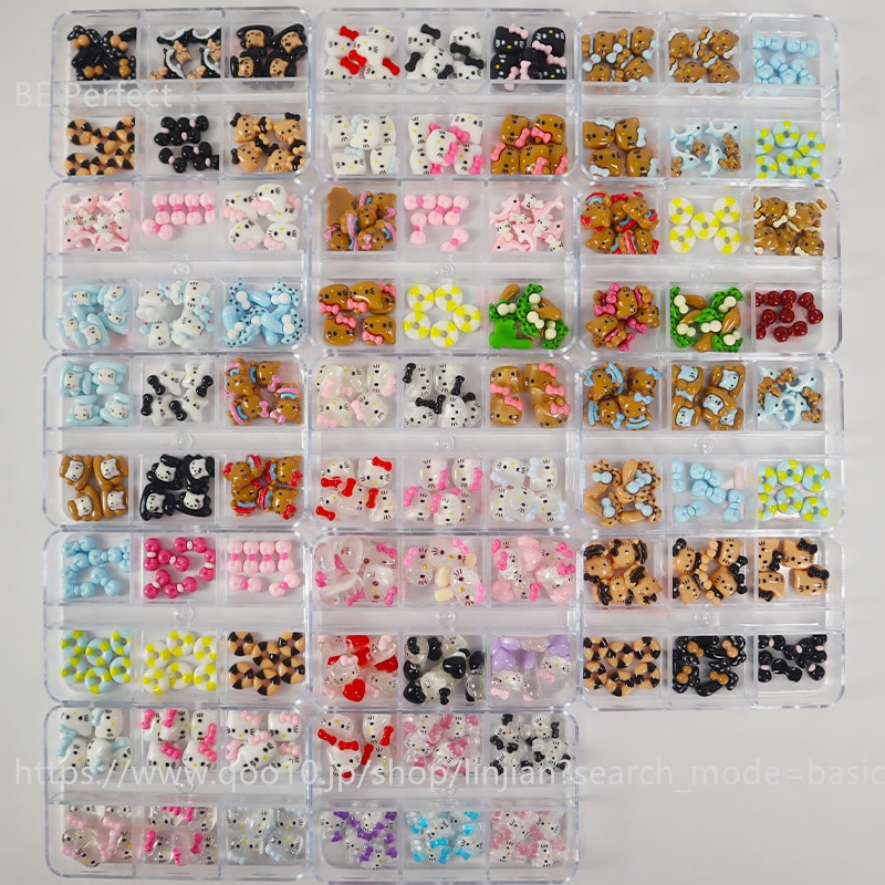 5+1 約30個入 ハローキティ かわいい ジェルネイル ネイルシール ネイルチップ ネイルパーツネイルアート漫画ボックスの装飾 デコパーツ