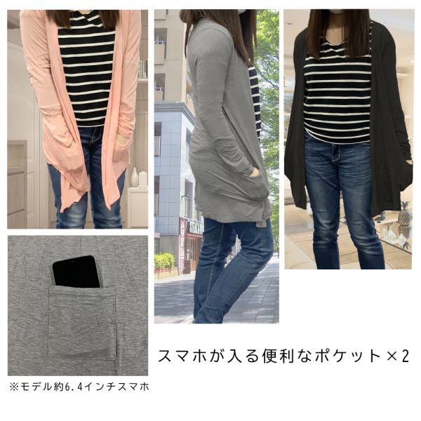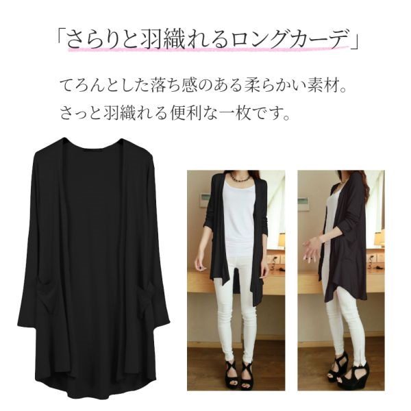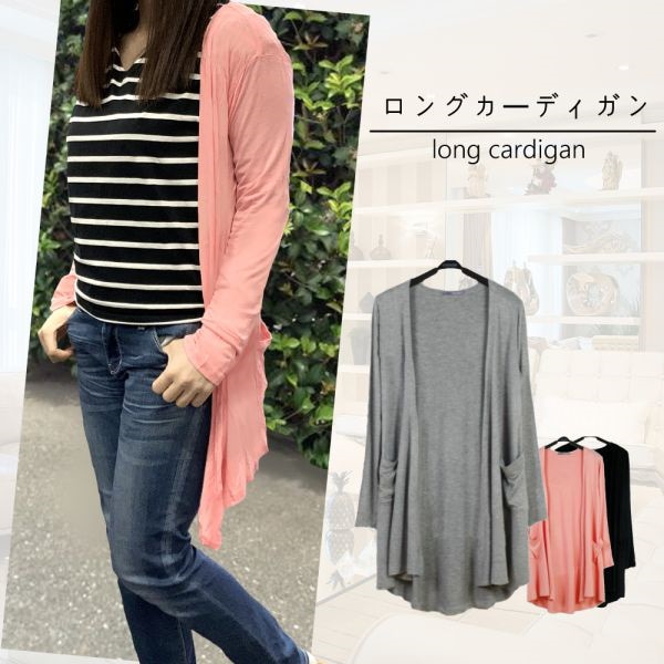 ロング カーディガン ブラック グレー ピンク トッパー シンプル ヒップ丈 冷房 紫外線対策 ブラック グレー ピンク カーディガン
