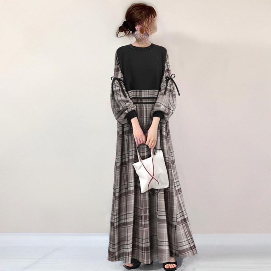 ワンピース レディース パフスリーブ ワンピース 秋冬 ロングワンピース ドッキングスカート きれいめ ワンピース 通勤 韓国 セクシー 新作 着痩せ