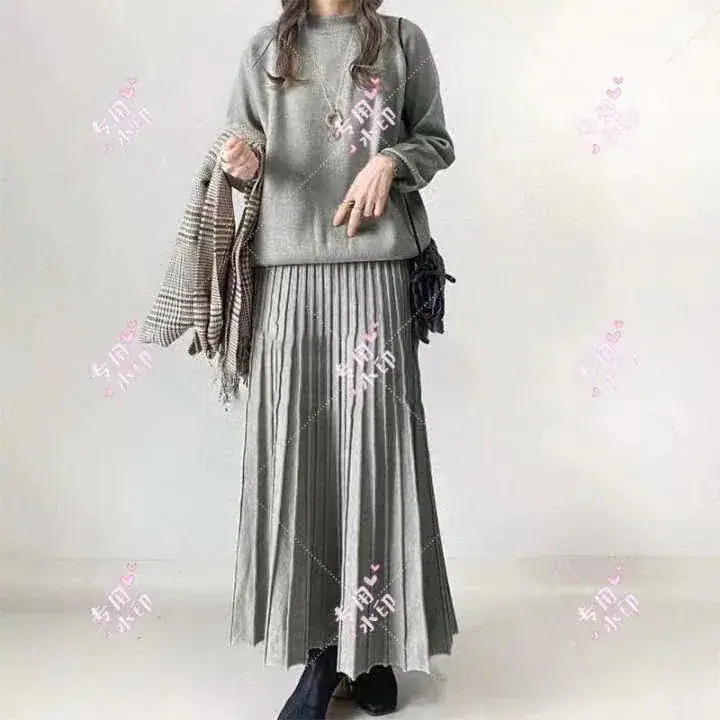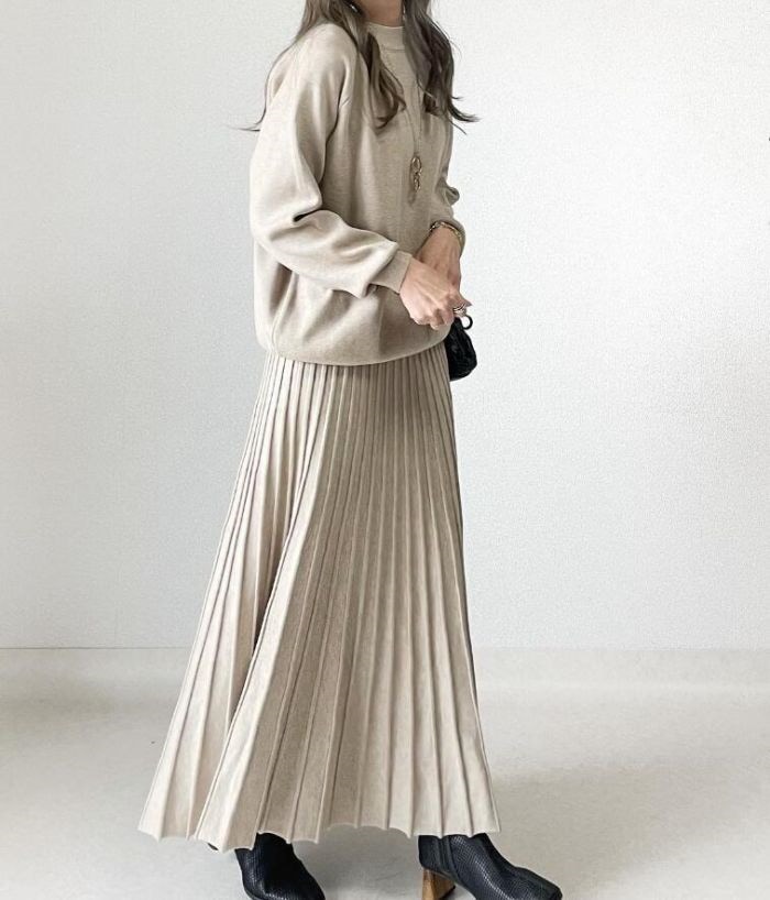 セットアップ レディース 長袖 セーター プリーツスカート ニット スカートセット ギャザー 秋冬 二点セット 無地7 セットアップ