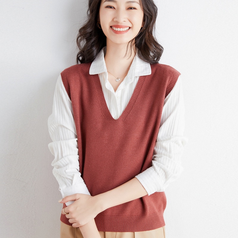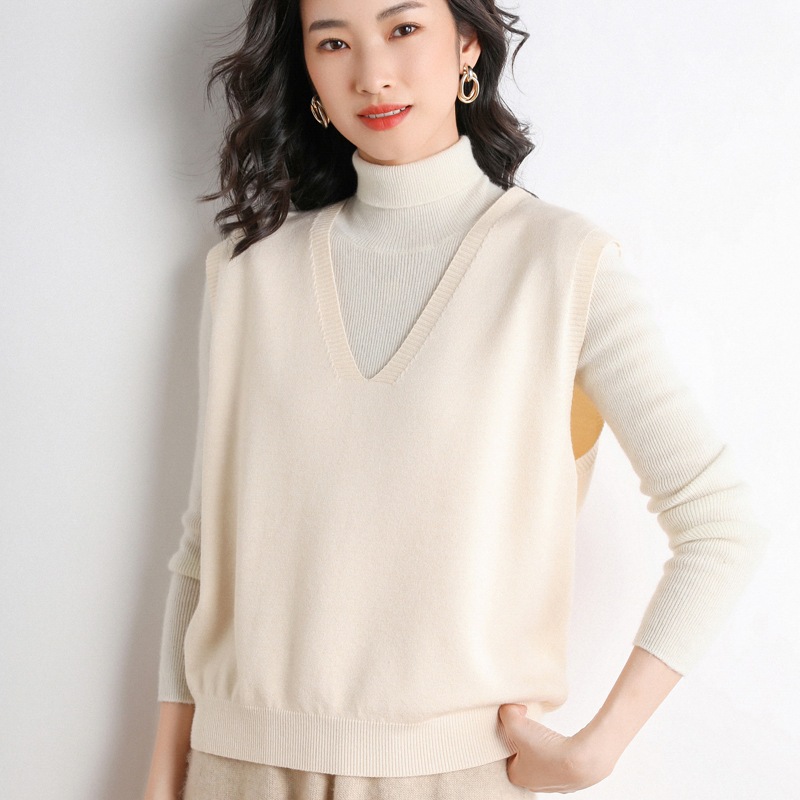 初春新作 ベスト レディース 韓国ファッション 重ね着ニットベスト百掛け ノースリーブ 大きいサイズ ゆったりVネックインナー セーター怠惰な風 ジャケット 春アウター