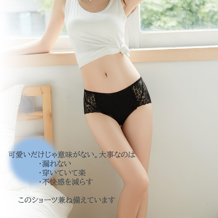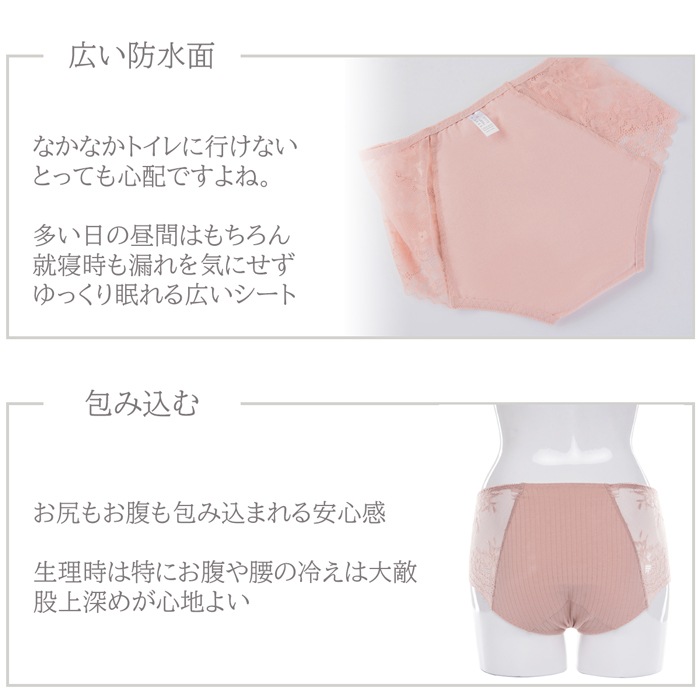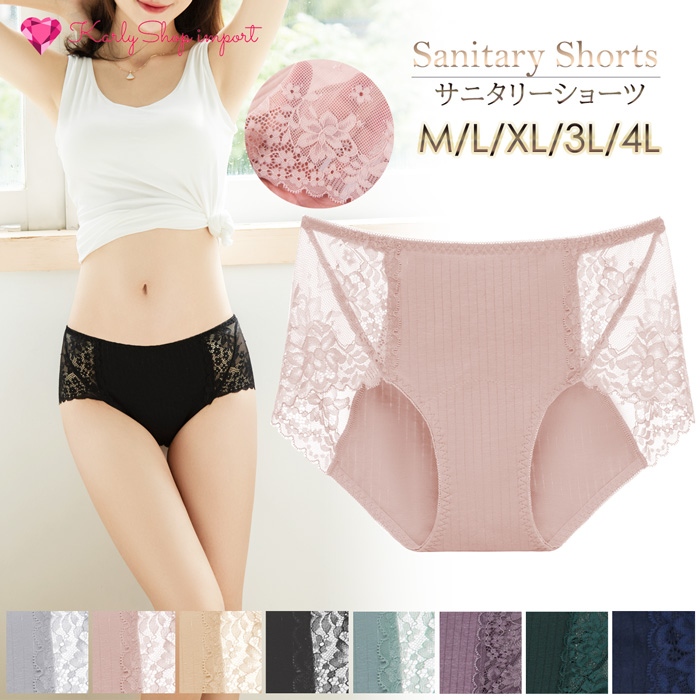 サニタリーショーツ 生理 綿 レディース レース 昼夜用 ナイト 多い日 ロング しっかり生地 防水布 深穿き 夏 通気性 大きい M-4L s609