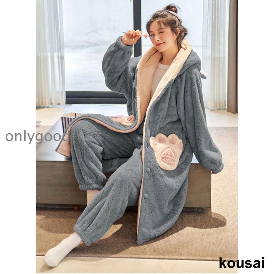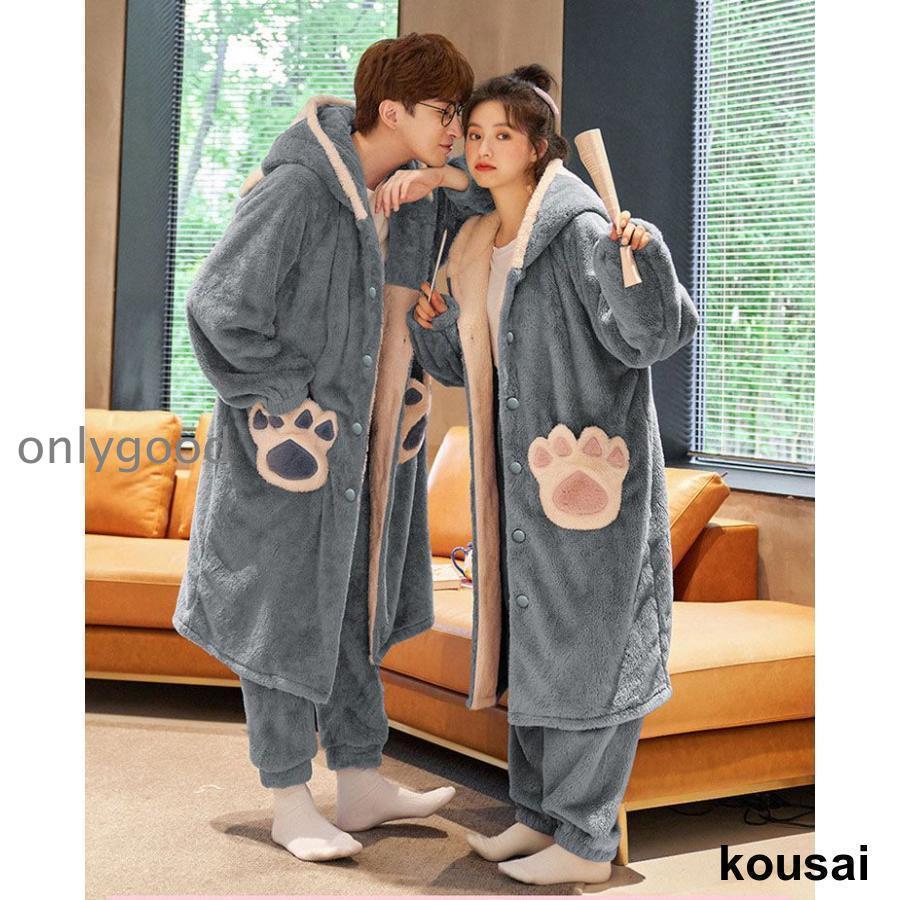 あったかルームウェア パジャマ お揃い 夫婦 ペアパジャマ カップル もこもこ 着ぐるみ パジャマ 大人用 ガウン 部屋着 着る毛布 韓国 ルームウェア 着ぐるみ レディース 動物 冬 上下