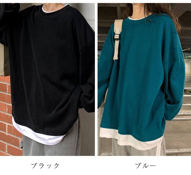 パーカー オーバー レディース 重ね着風 長袖 無地 ゆったり 大きめ 春 秋 おしゃれ レディス ティーシャツ オシャレ パーカー
