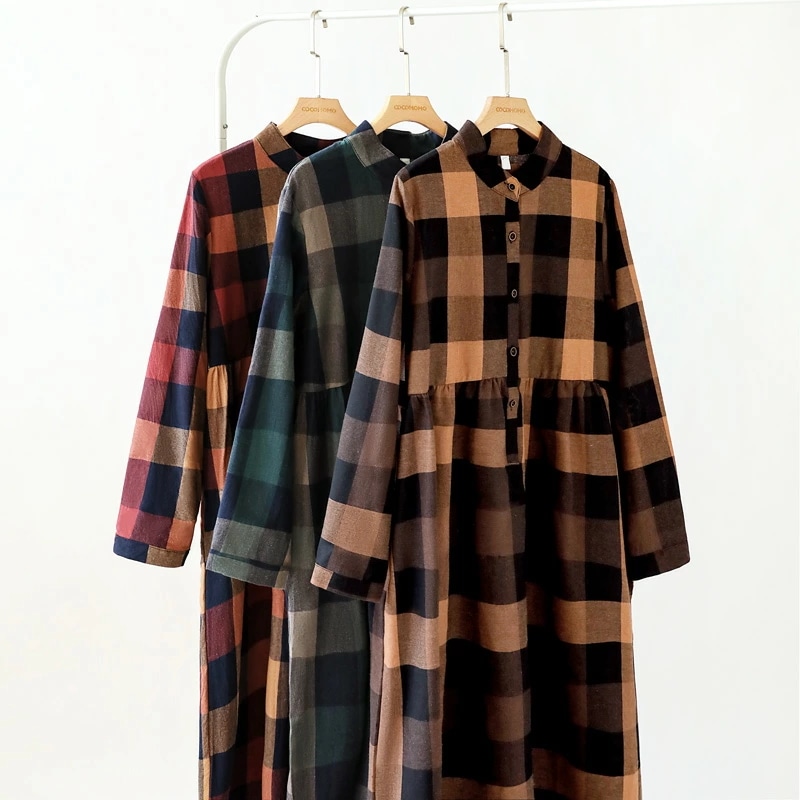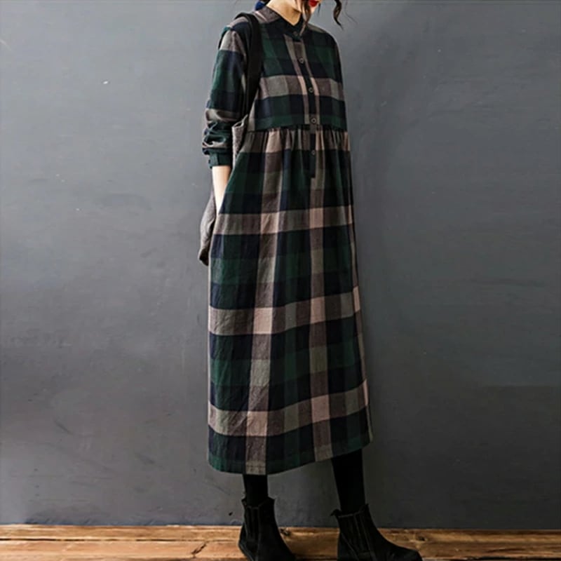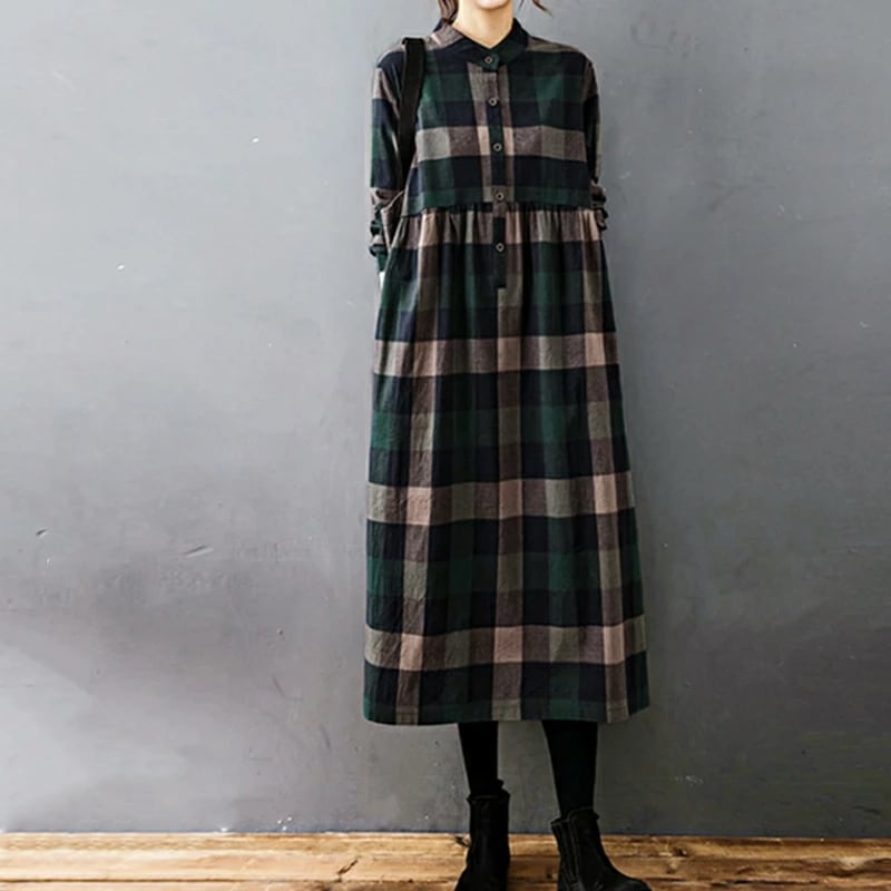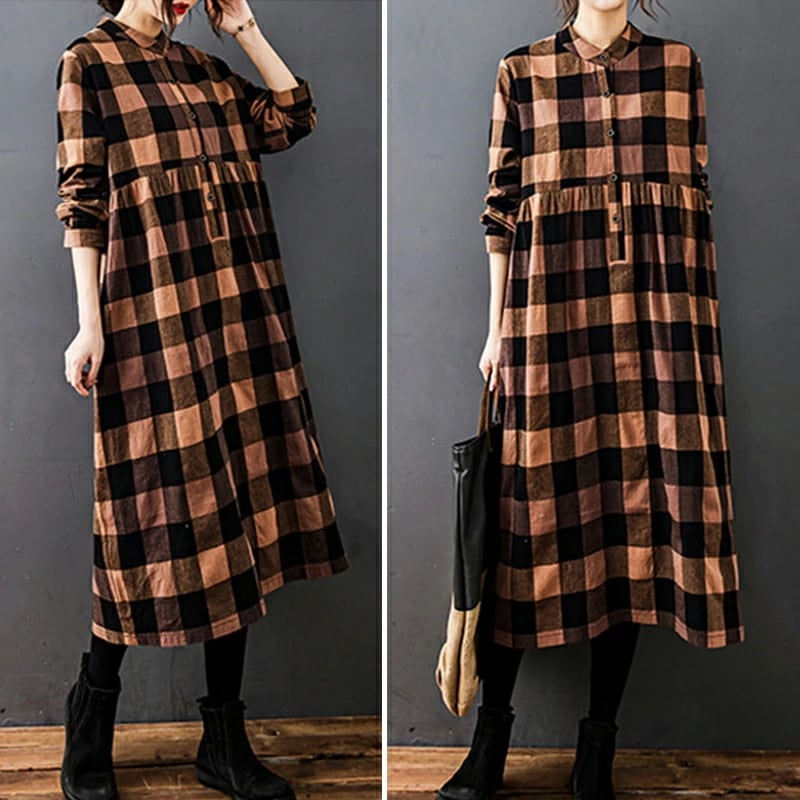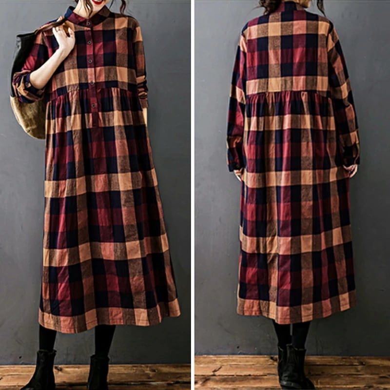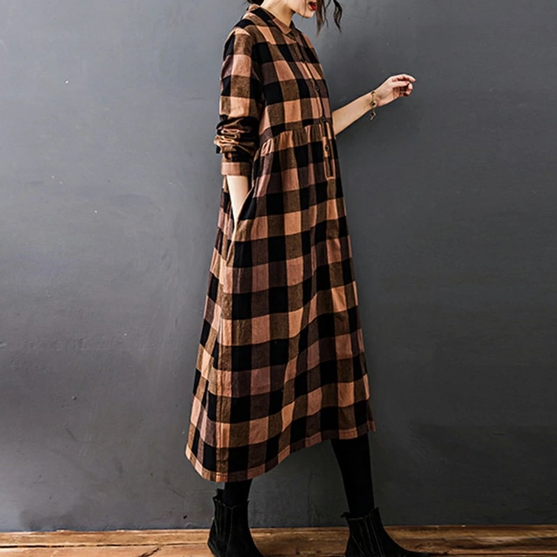 シャツワンピース チェック柄 ロングワンピース シャツ ワンピース 長袖 レディース チェック ロング丈 大きいサイズ 体型カバー ゆったり チェックワンピース