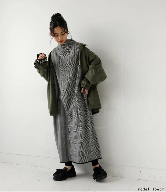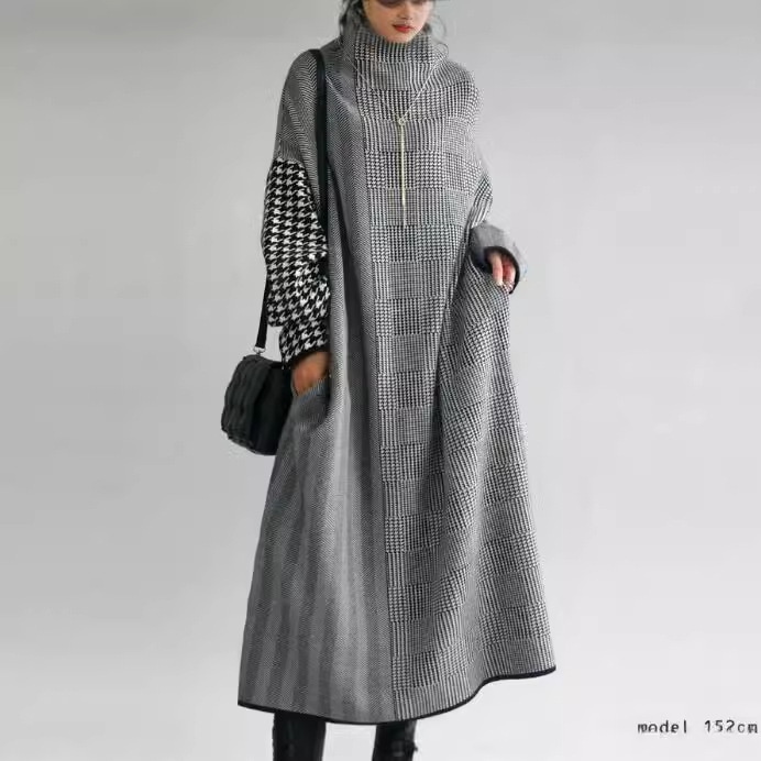 ワンピース レディース 千鳥柄 ニットワンピース 秋冬 ロングワンピース きれいめ ワンピース 通勤 韓国 セクシー 新作 着痩せ 長袖ロング マキシ丈ワンピ