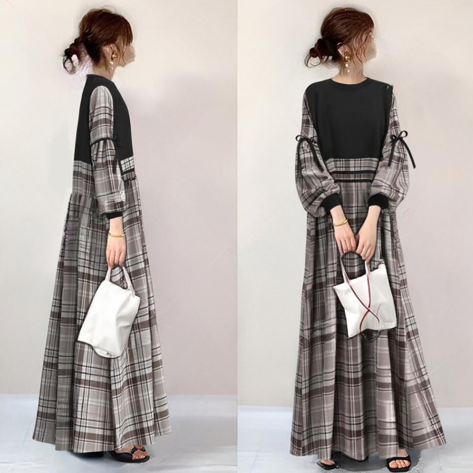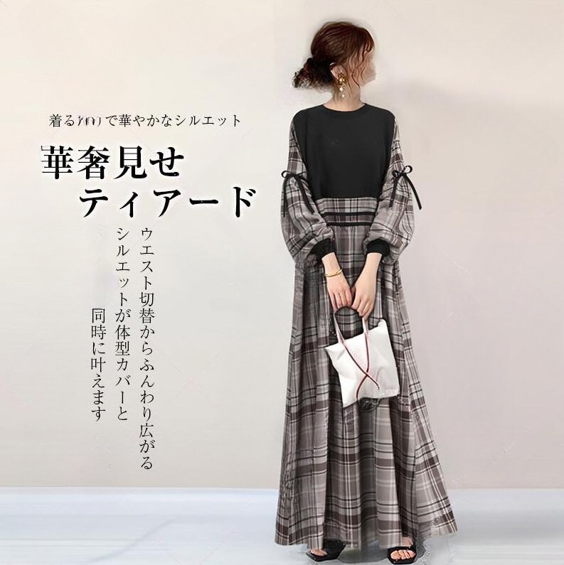 ワンピース レディース パフスリーブ ワンピース 秋冬 ロングワンピース ドッキングスカート きれいめ ワンピース 通勤 韓国 セクシー 新作 着痩せ