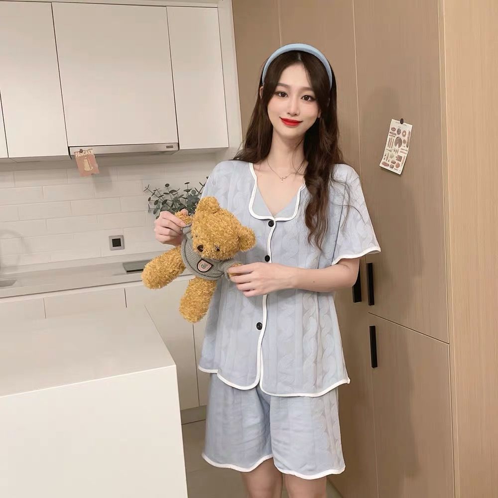 パジャマ 女性 夏 半袖 ショートパンツ 薄手 カーディガン ホームウェア スーツ パジャマ
