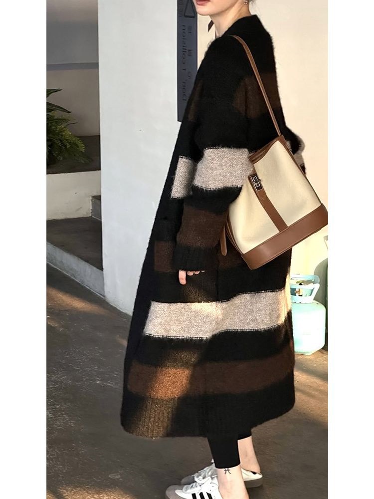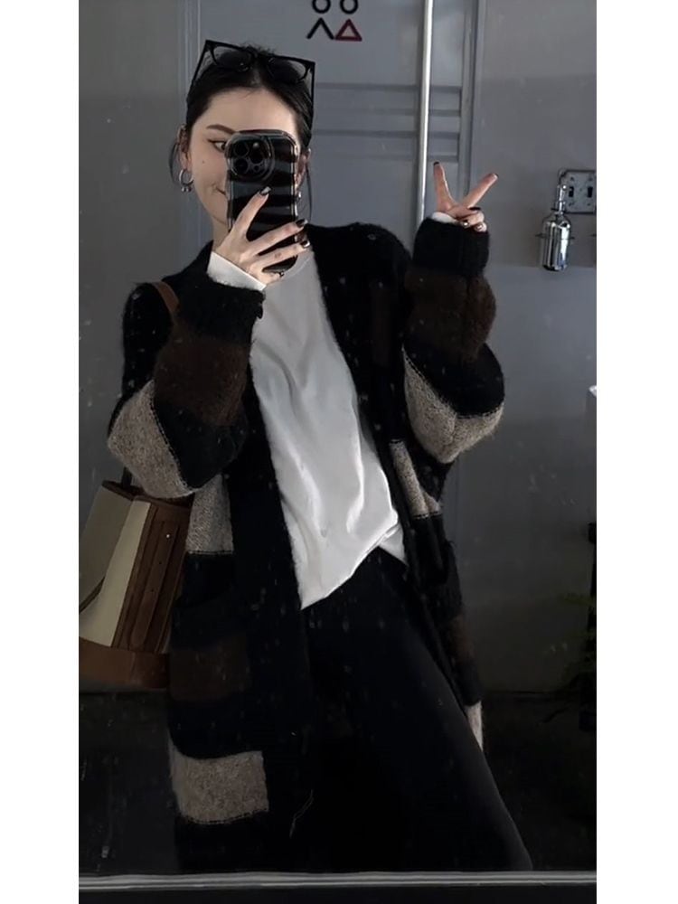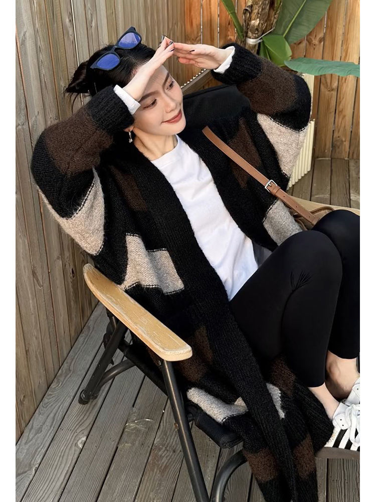 韓国ファッションニットカーディガン流行りベーシックニットゆったりスウェットトップス 長袖ニットトップス セーター 着痩せ セミロング丈 秋アウターメガ割