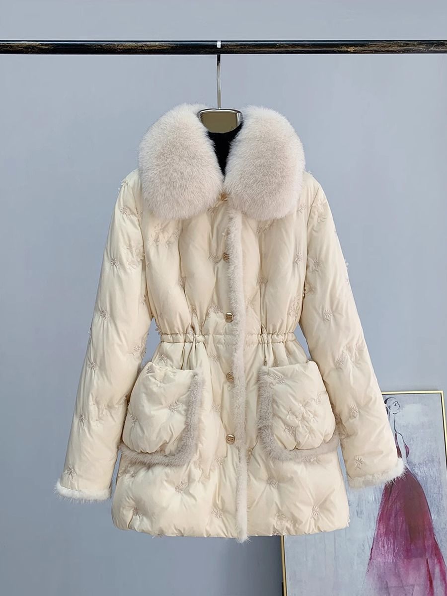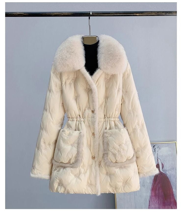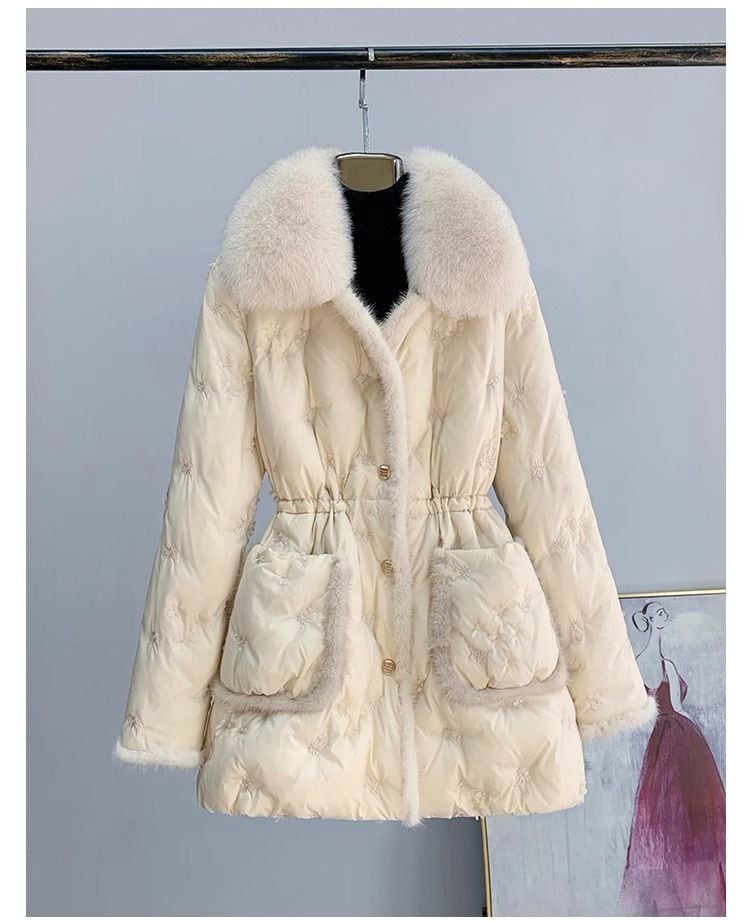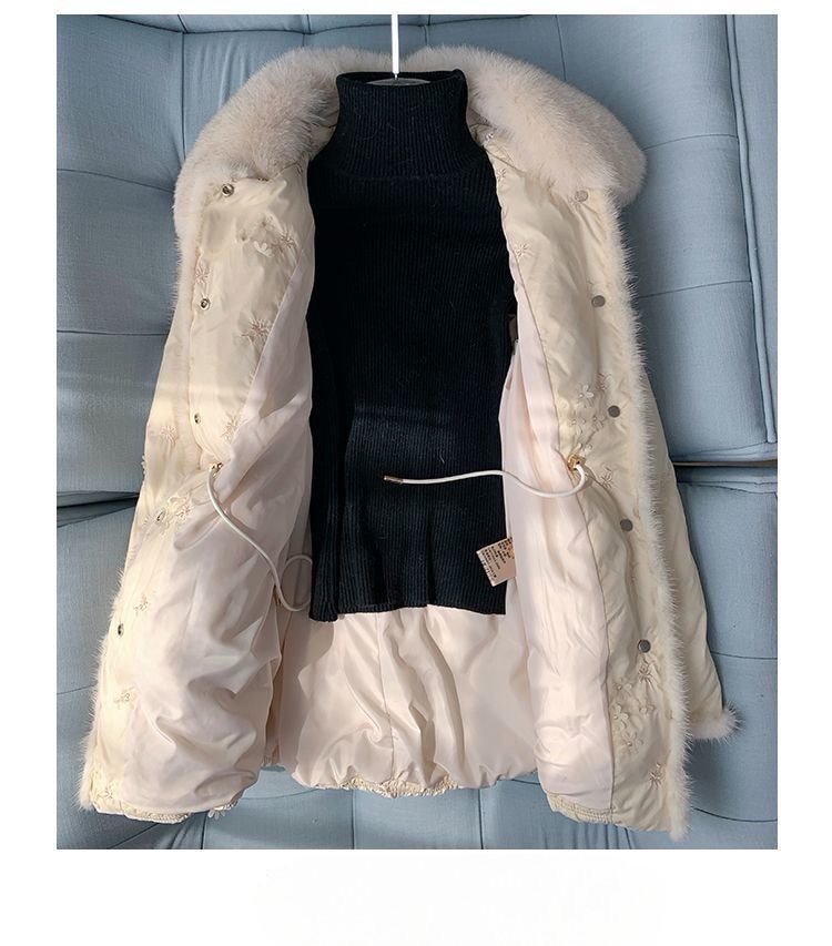 冬のキツネの毛の襟は毛皮のダウンジャケットの女性の長いミンクの毛の白いアヒルの毛の冬の保温コートを脱ぐことができる ダウンジャケット コート