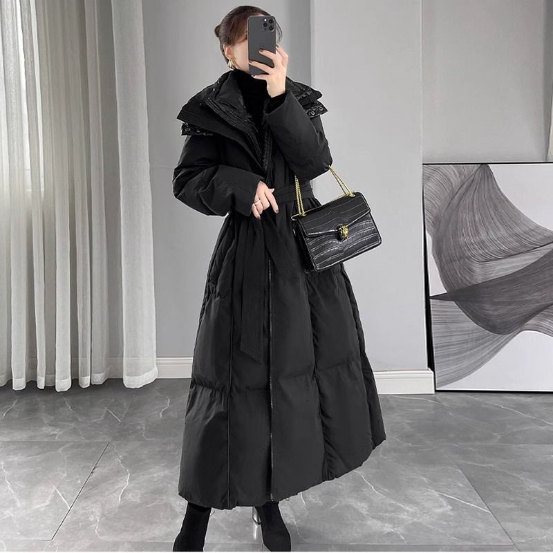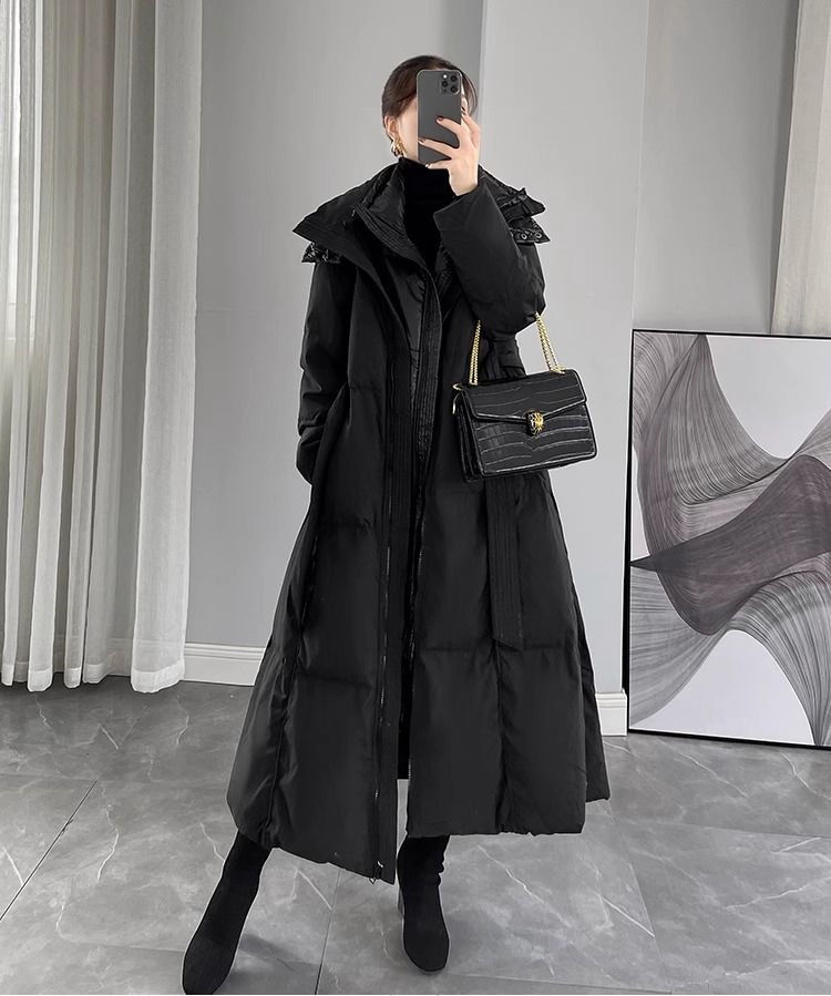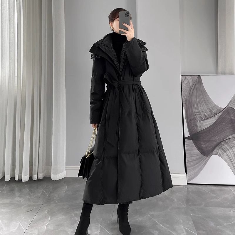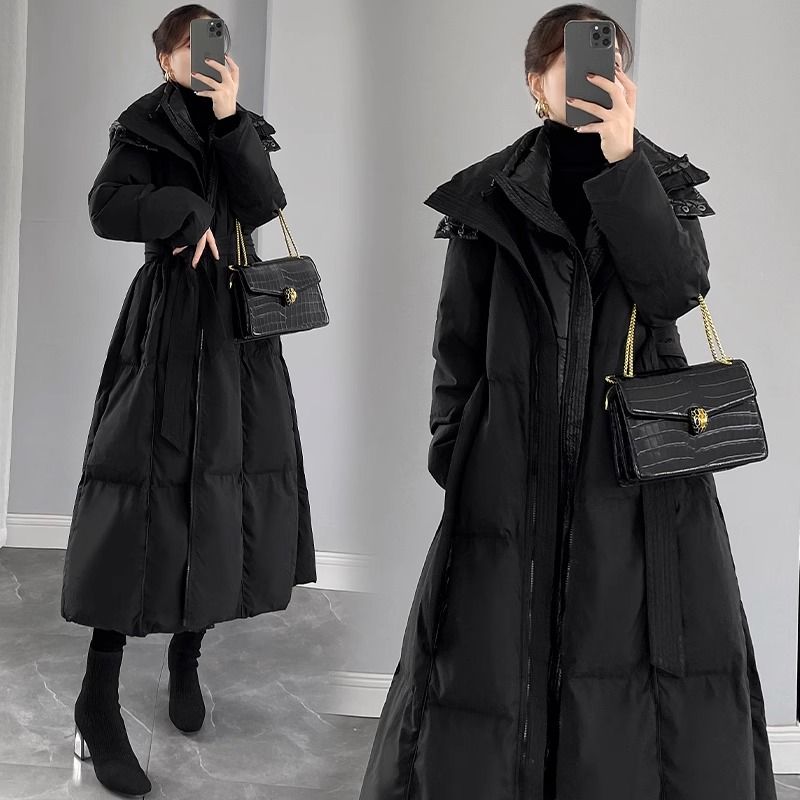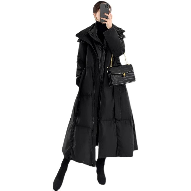 2024年冬の新型修身超ロングタイプ膝黒ダウンジャケット女装帽子白鴨ダウンコートが厚くなった ダウンジャケット コート