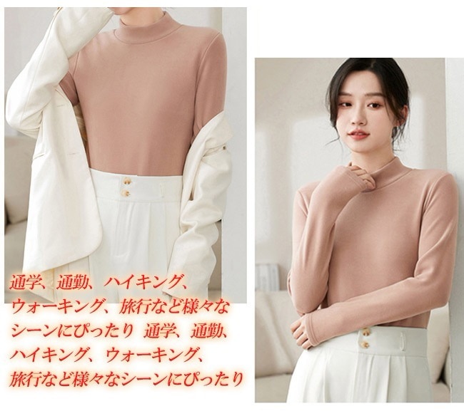 極暖 両面起毛 タートルネック インナー 秋冬 裏起毛 長袖 トップス あったか レディース カットソー おしゃれ 無地 柔らかい OL 通勤 オフィス