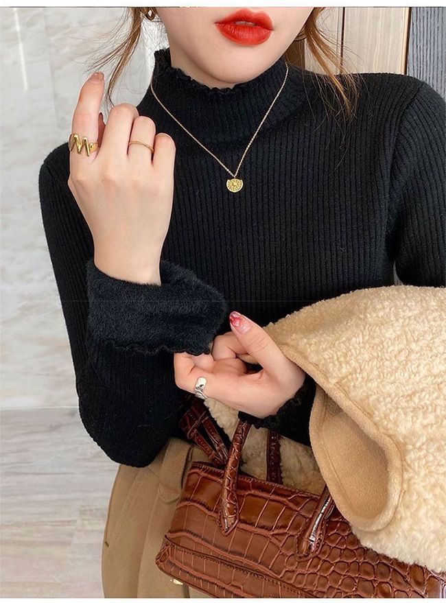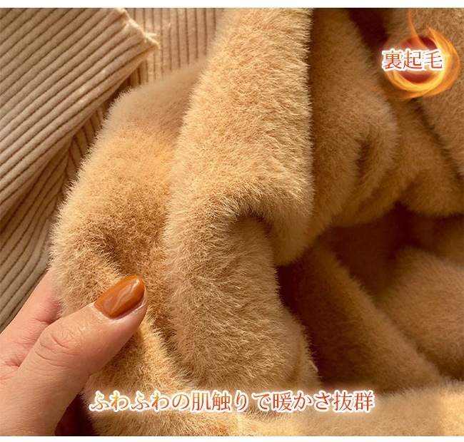 ロイヤル 裏起毛 ニット トップス レディース フリルネック ミドルネック セーター モックネック 裏ボア 秋冬 長袖 オフィス カジュアル 暖か 防寒