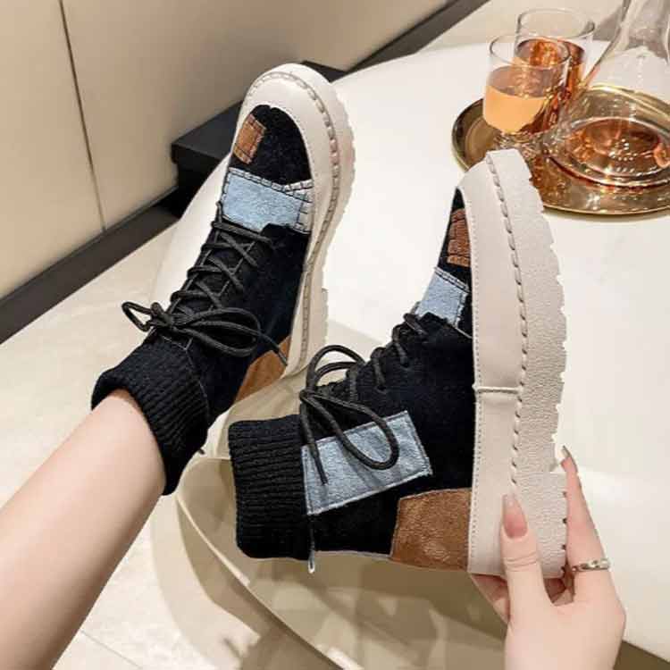 パッチワークショートブーツソックススニーカー裏起毛レディース切り替えソックスブーツ女子滑りにくい履きやすい歩きやすい疲れにくい可愛いおしゃれカジュアル通学秋冬全3色