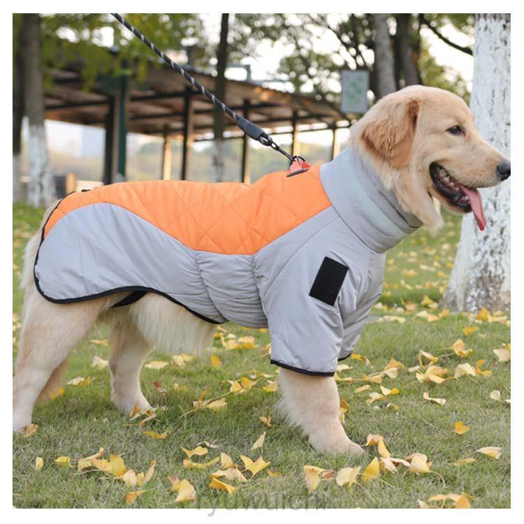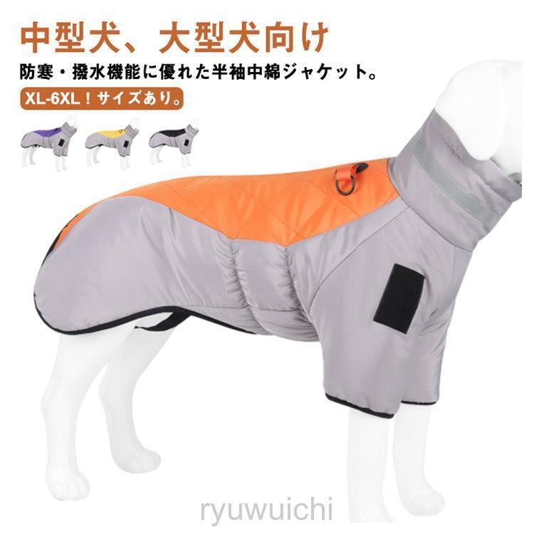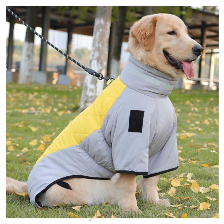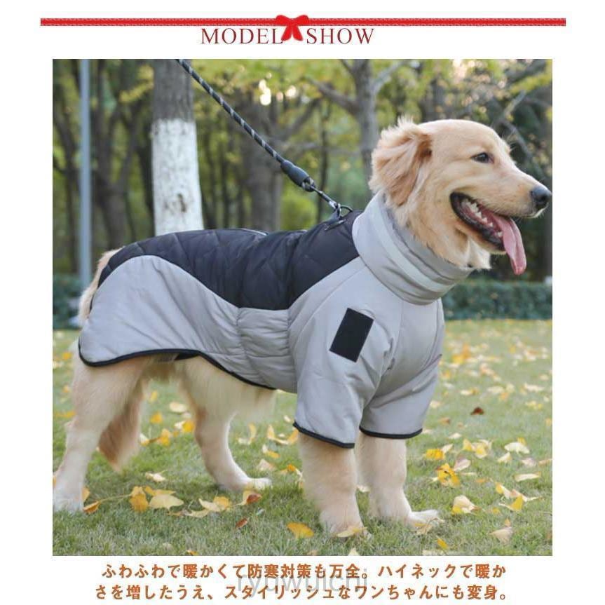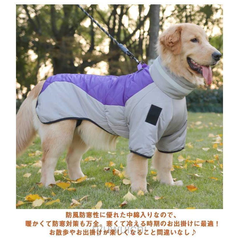 ドッグウェア 背中開き 中綿 コート 配色 中型犬 大型犬 向け 犬服 ダウン ジャケット ハイネック ハーネス 秋 冬 3XL 防寒 防寒着
