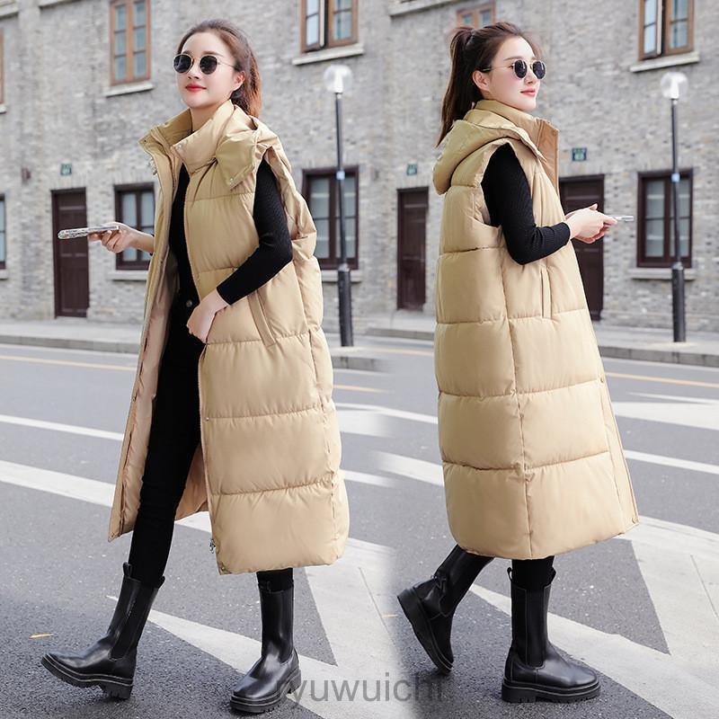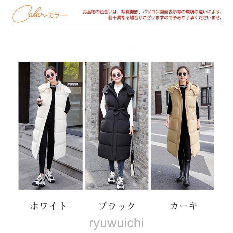 中綿ベスト レディース ダウンベスト ロング丈ベスト 防寒ベスト フード付き ノースリーブ アウター 防寒 無地 ジレ 前開き ゆったり 通勤 着痩せ