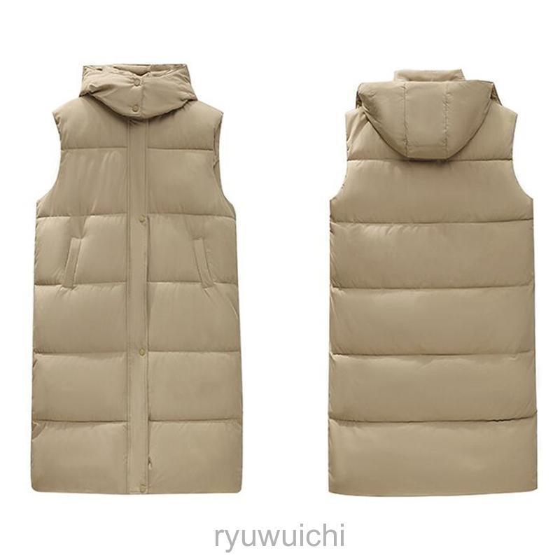 中綿ベスト レディース ダウンベスト ロング丈ベスト 防寒ベスト フード付き ノースリーブ アウター 防寒 無地 ジレ 前開き ゆったり 通勤 着痩せ